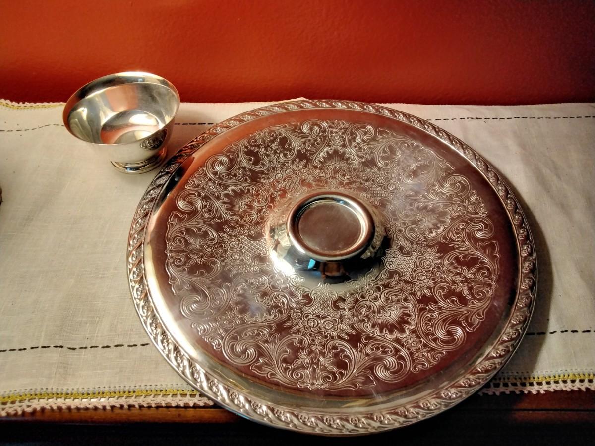 Vintage WM Rogers & Son Spring Flower #2066 Serving Tray with Bowl