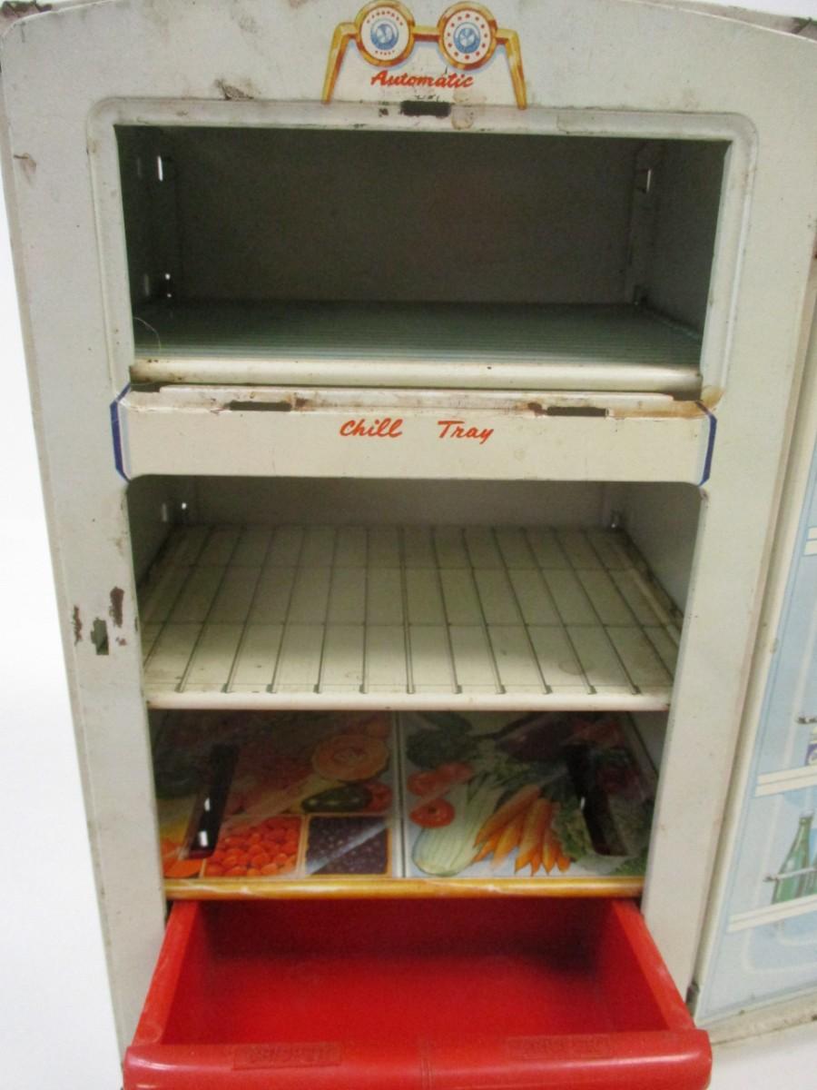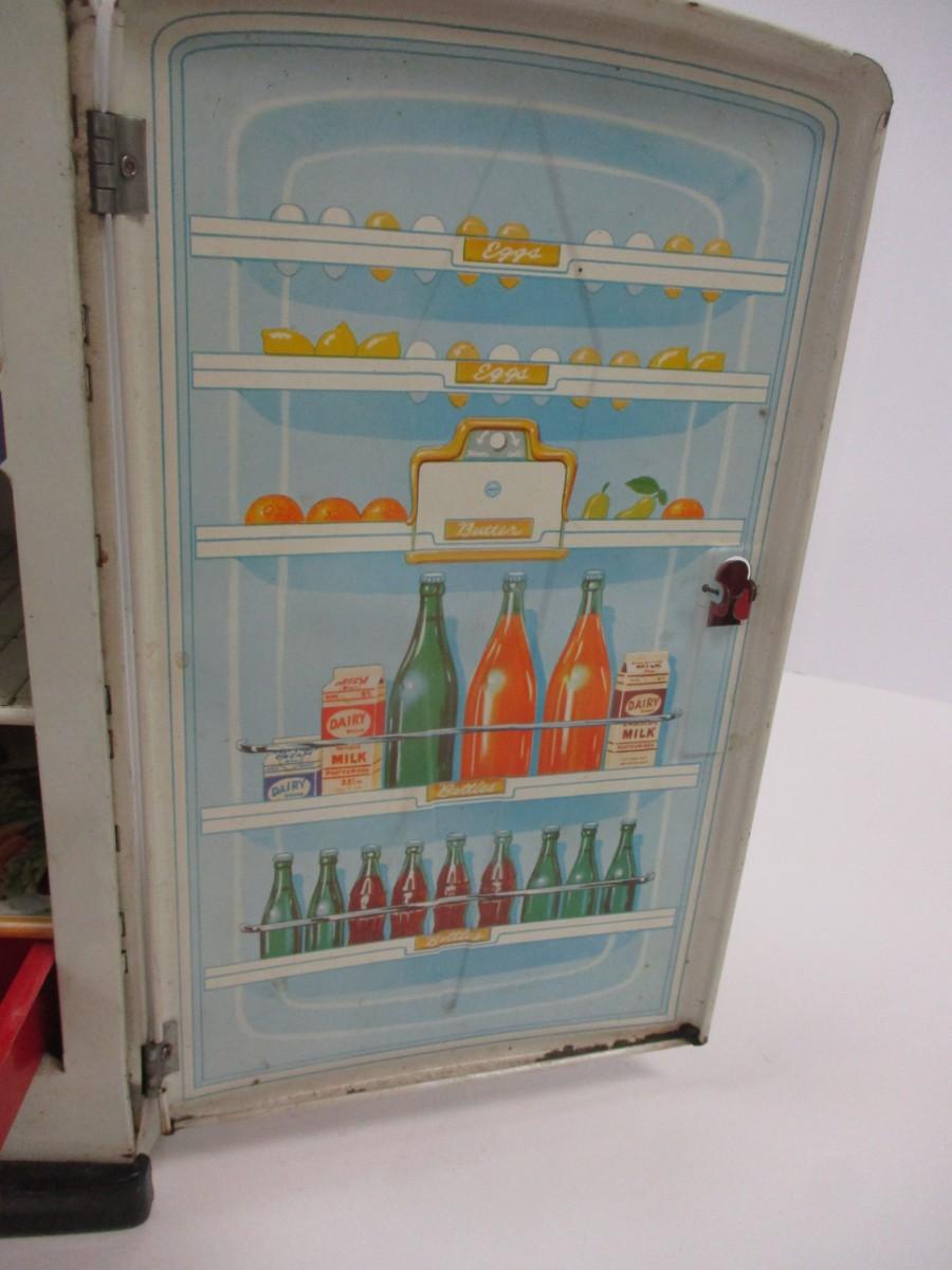 Vintage Wolverine Toy Co. Tin Refrigerator Lithograph Metal Kid's Toy