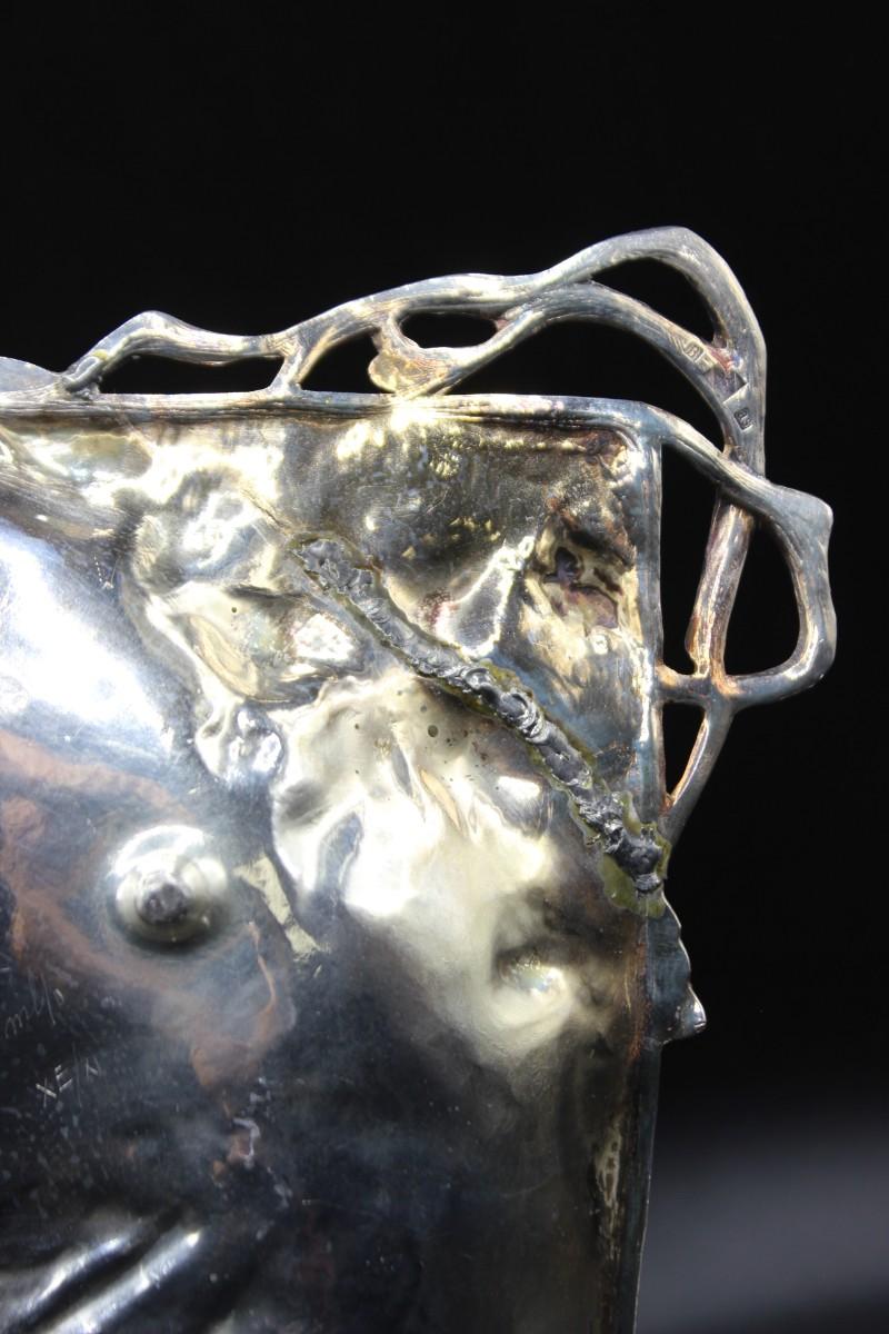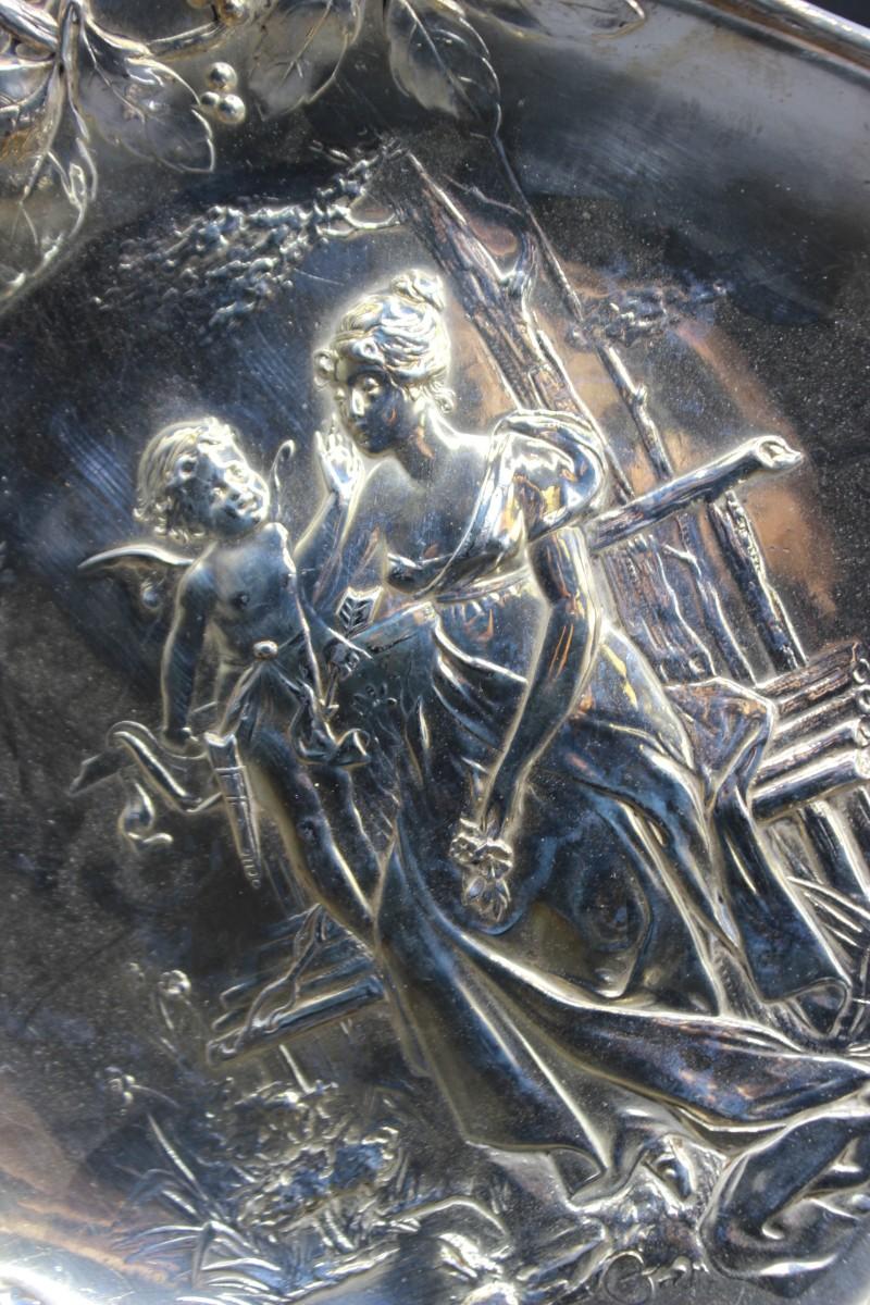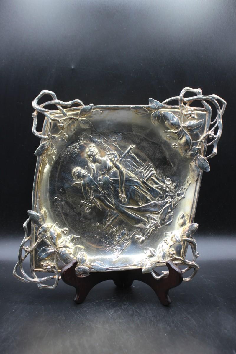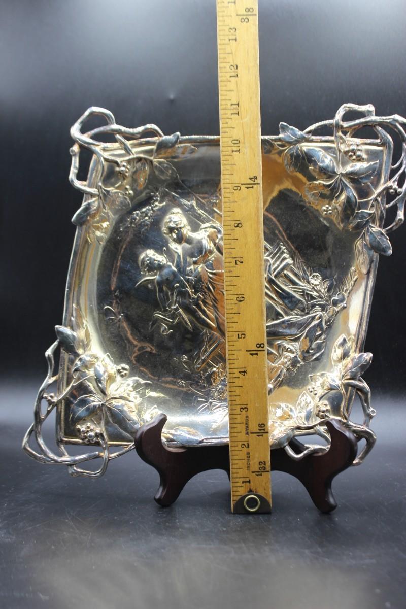 Vintage Art Nouveau Woman and Cherub Mythological Pewter Dish