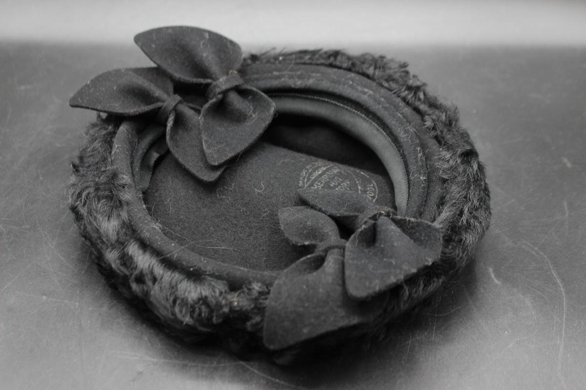 Vintage women's black wool hat from Merrimac Hat Corp. In vintage worn condition.