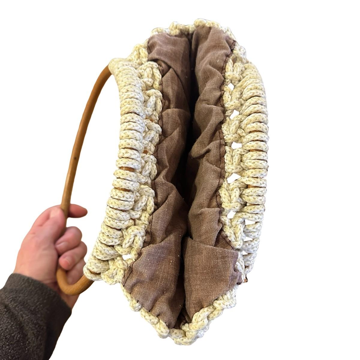 Vintage Womens Beige Braided Purse/Handbag, solid condition but needs some surface cleaning, plastic handle. Approx 11" not including handle; handle approx 8" diameter.