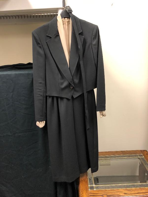 Vintage women's business suit. Skirt, belt, jacket, and blouse. Made by Jack Byran. Does have a spot on back of skirt.