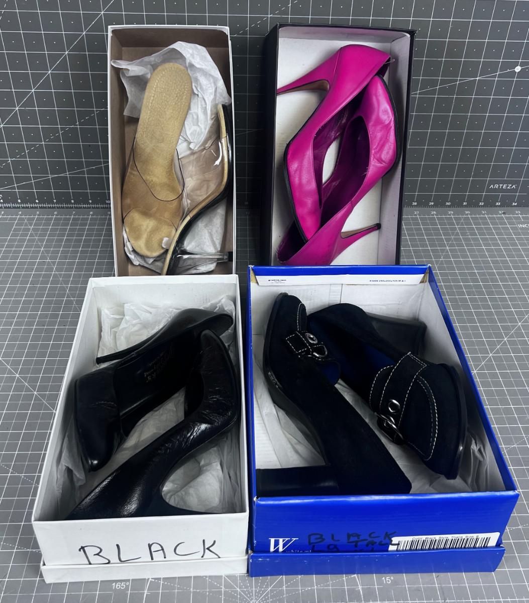Vintage Women's Heels: Clear, Black, Hot Pink