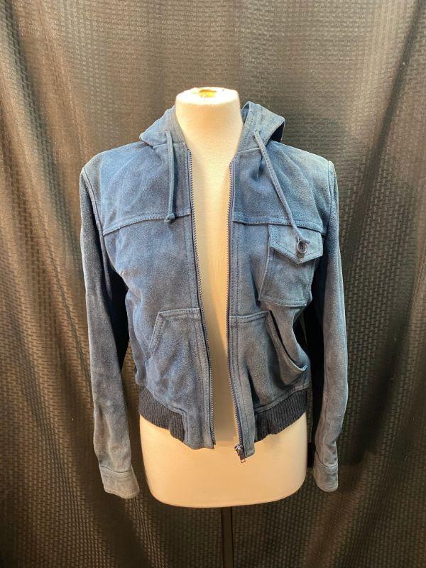 Vintage Women's Junior's Blue Suede Zip Up Hooded Jacket Size 13