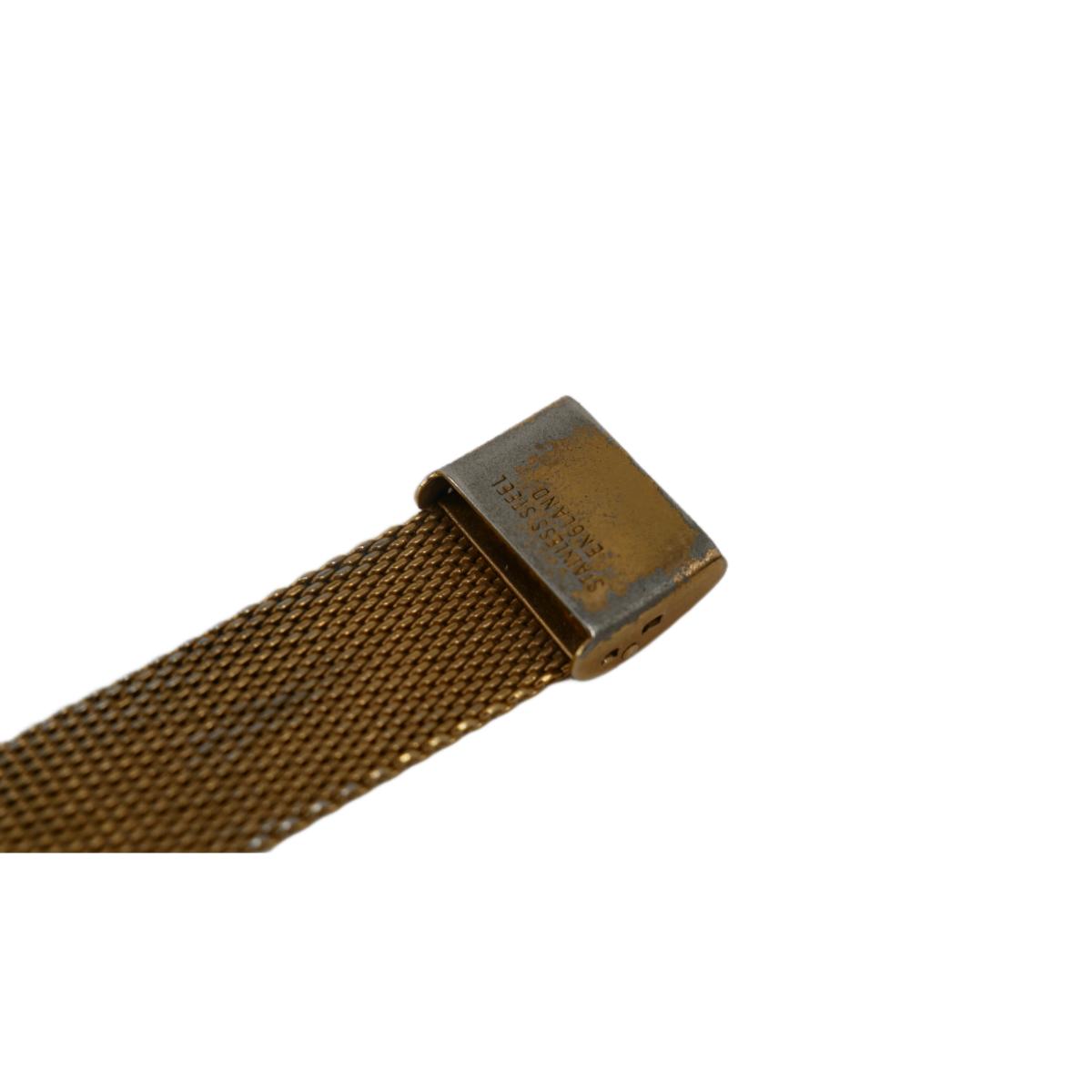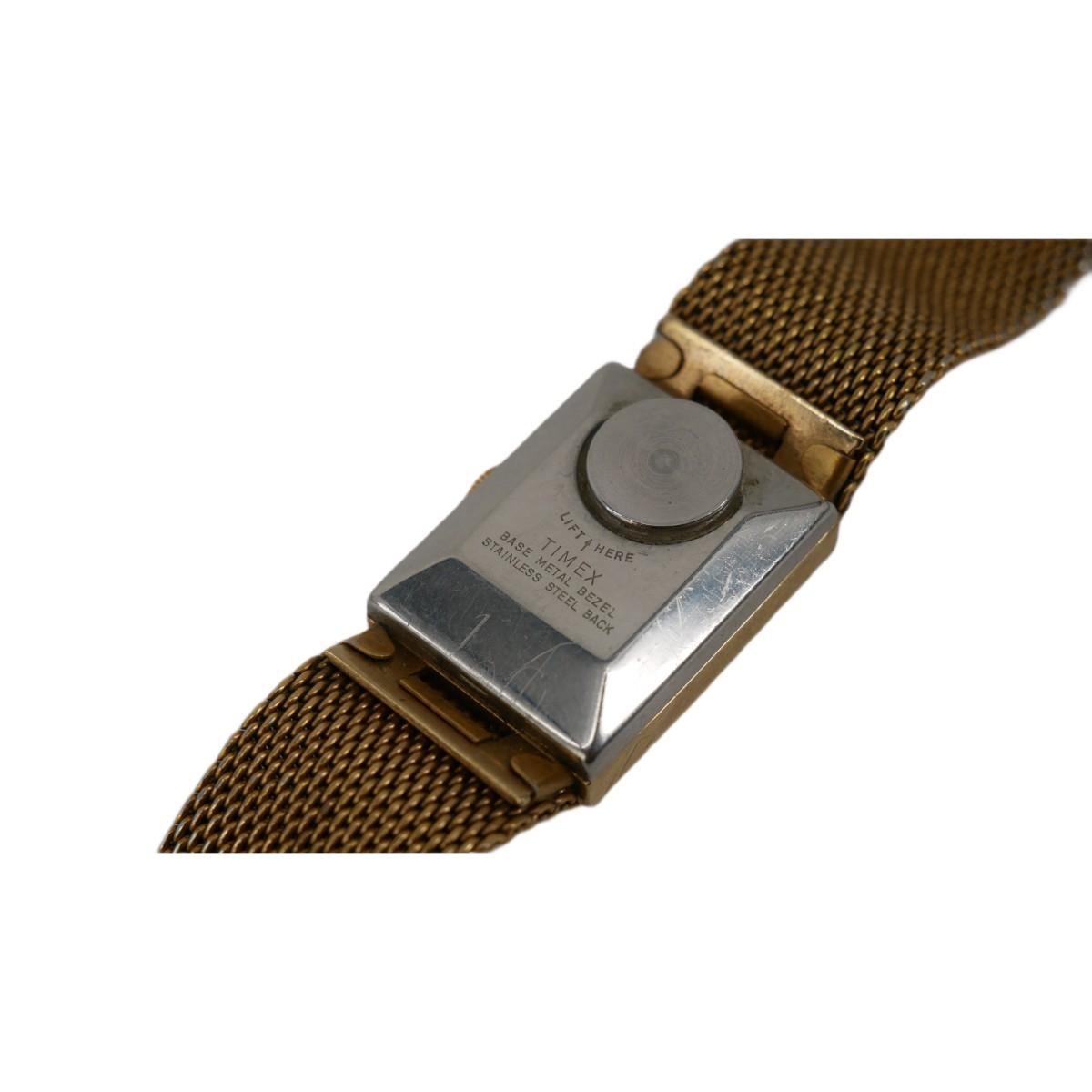Vintage women's watches. Gold Timex electric watch is in non-operational condition. Measures approximately 7.75" at longest length and can be adjusted down with a 20mm face. Gold Wittnauer watch is operational and. Measures approximately 5.5" with a 12mm face. Lot weighs 2 oz. (J8)