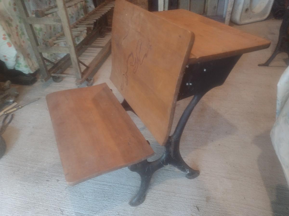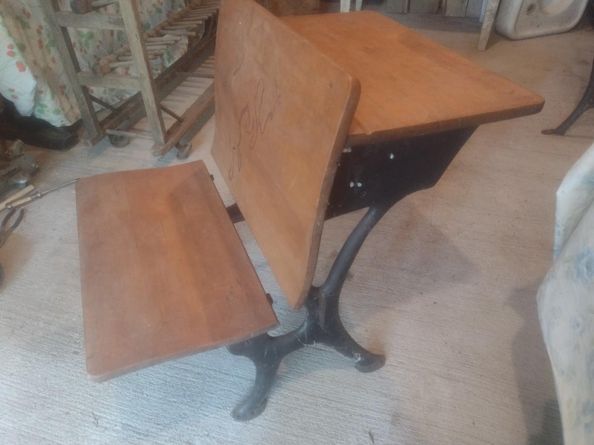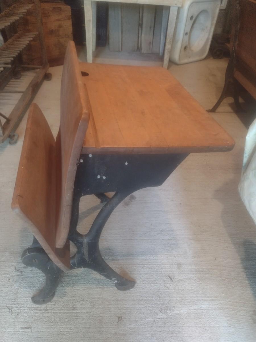 Vintage Wood and Cast Metal Students Desk