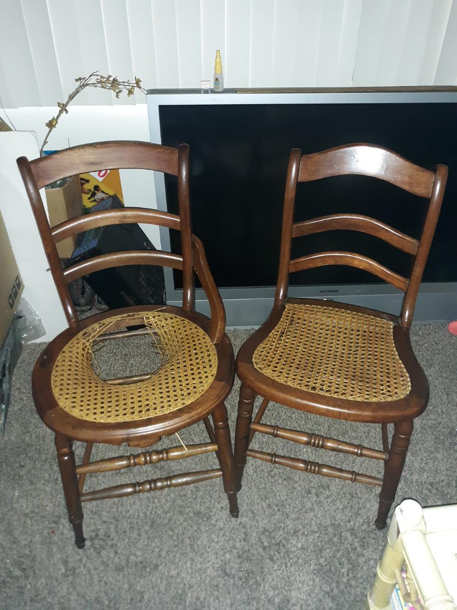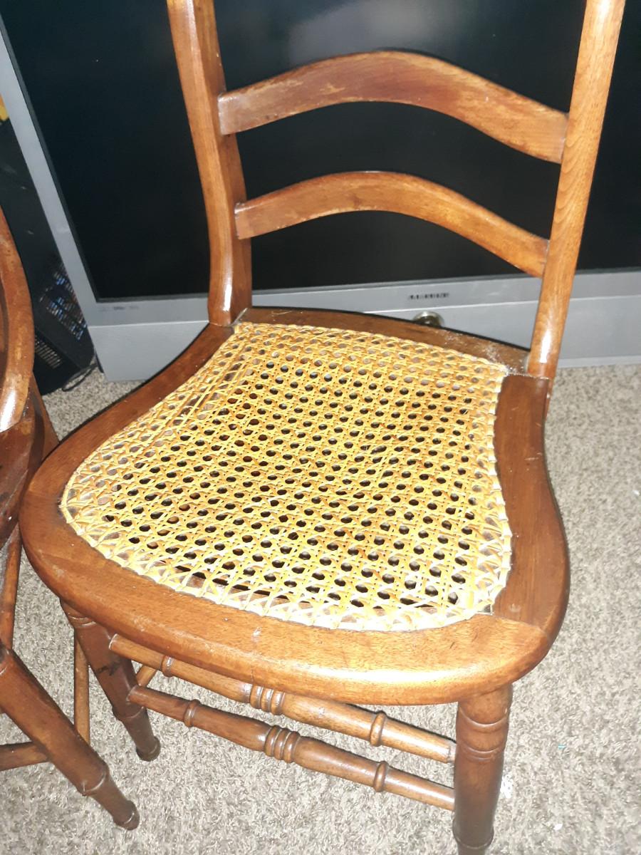 Vintage Wood and Wicker Ladder Back Chairs - pair