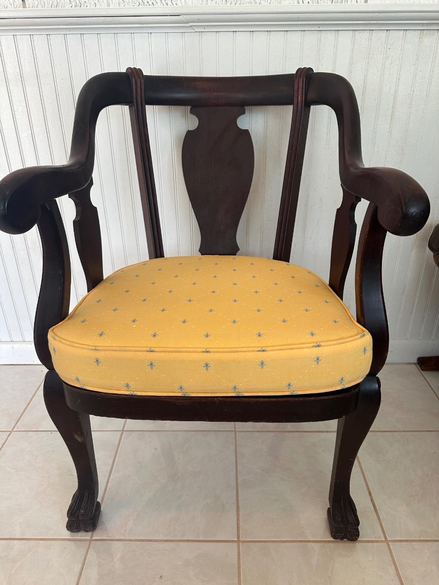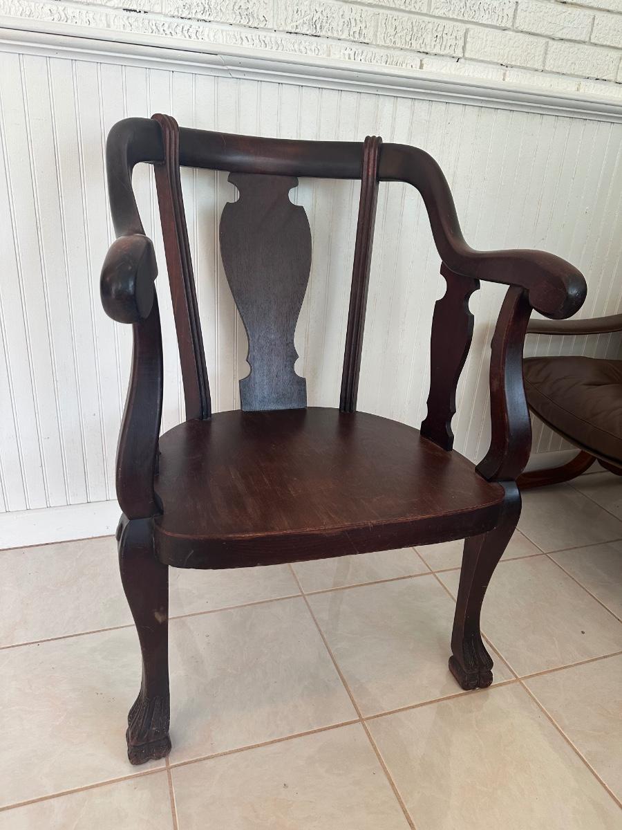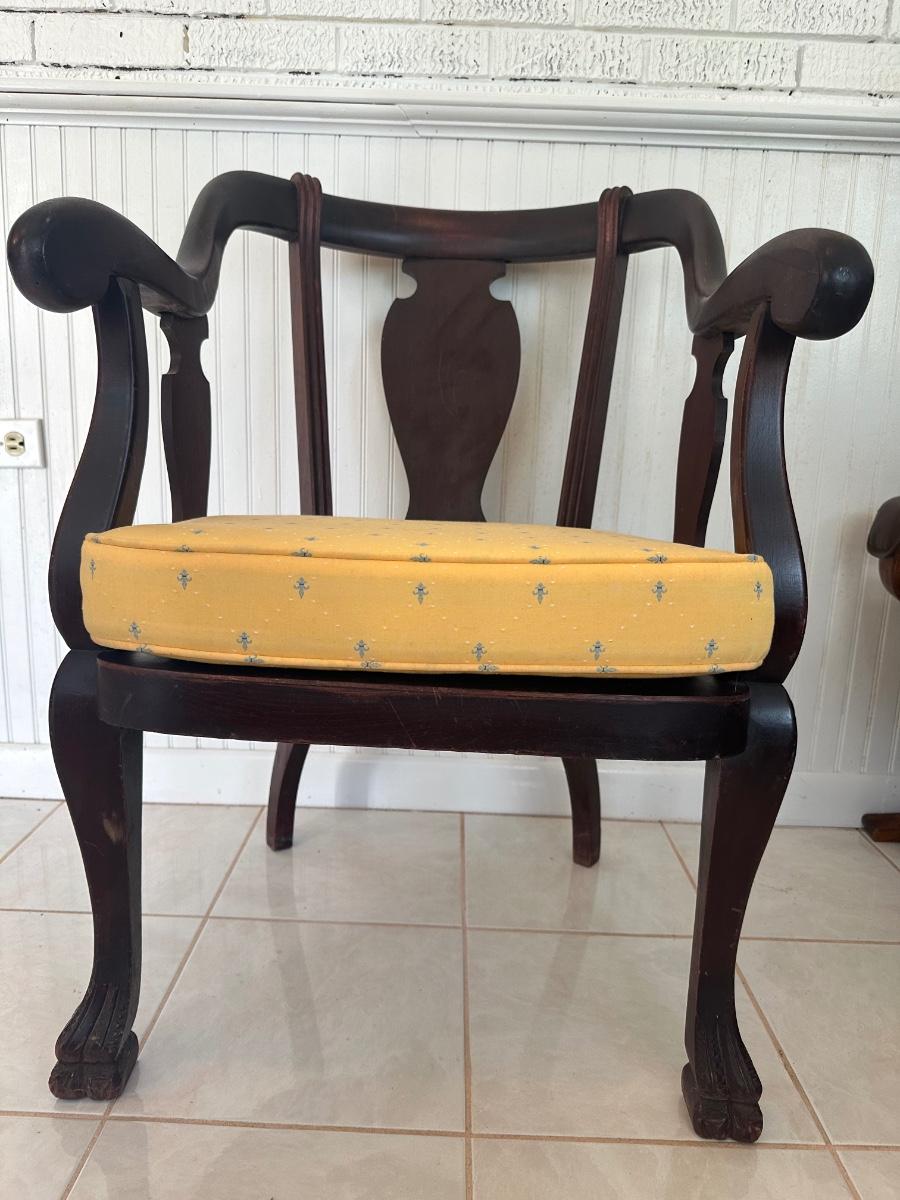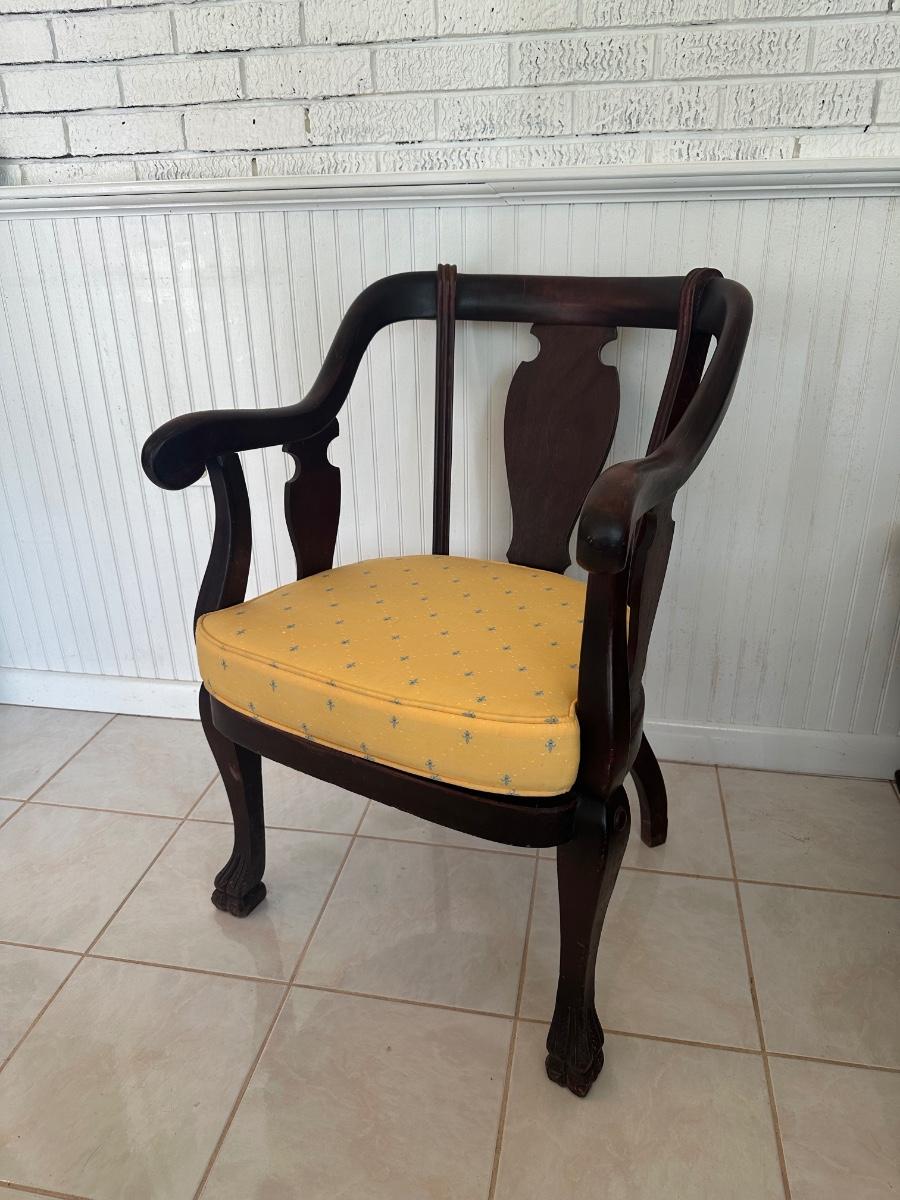 Vintage Wood Armchair with Upholstered Seat