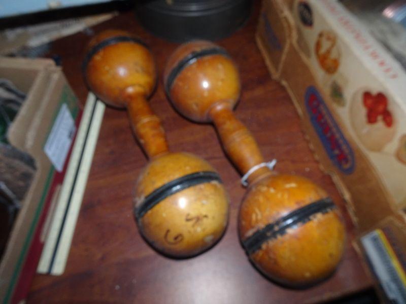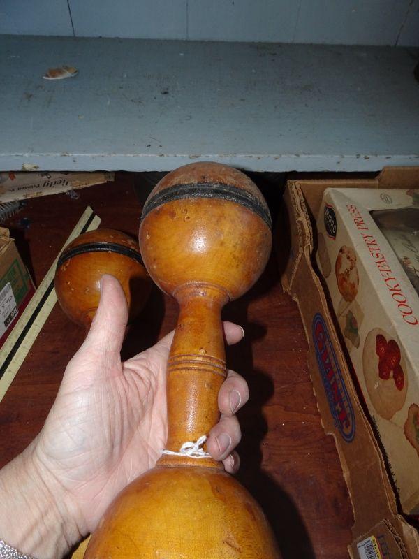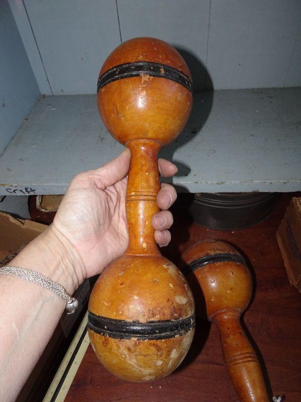 Vintage Wood Barbells, Circus Bar Bells, Props