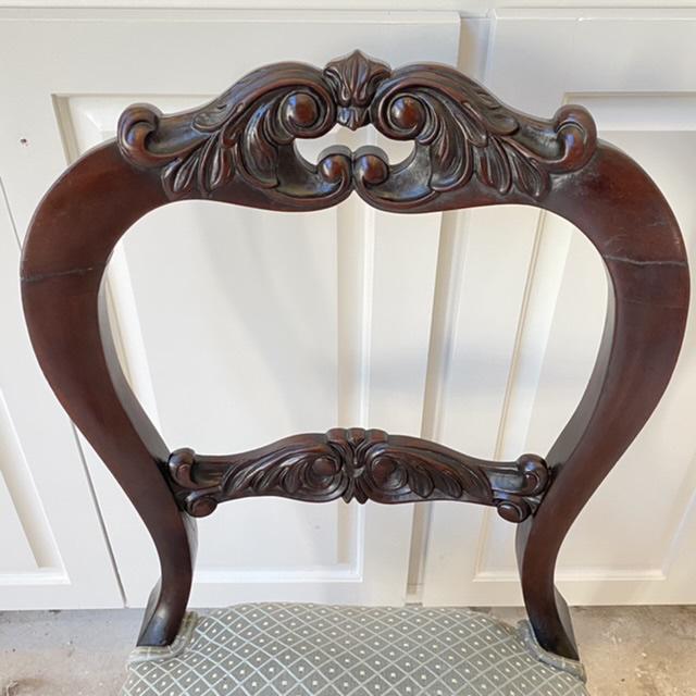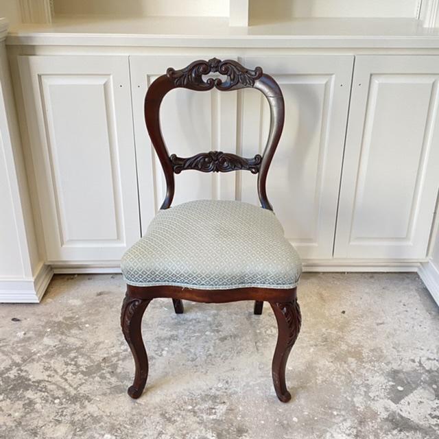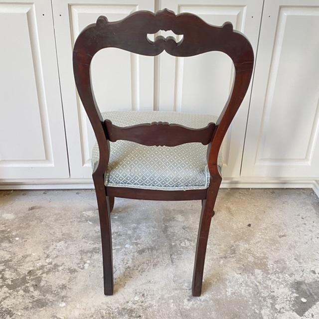Vintage Wood Blue-Grey Fabric Seat Chair