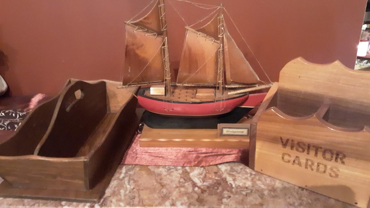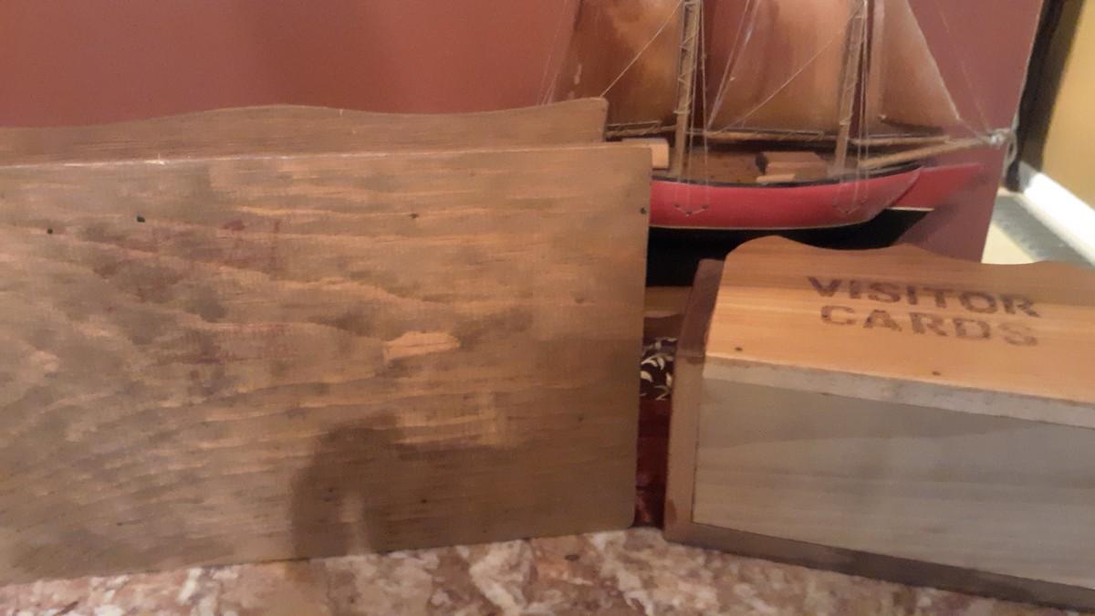 Vintage Wood Boat, Handmade Box with handle and Visitor Box