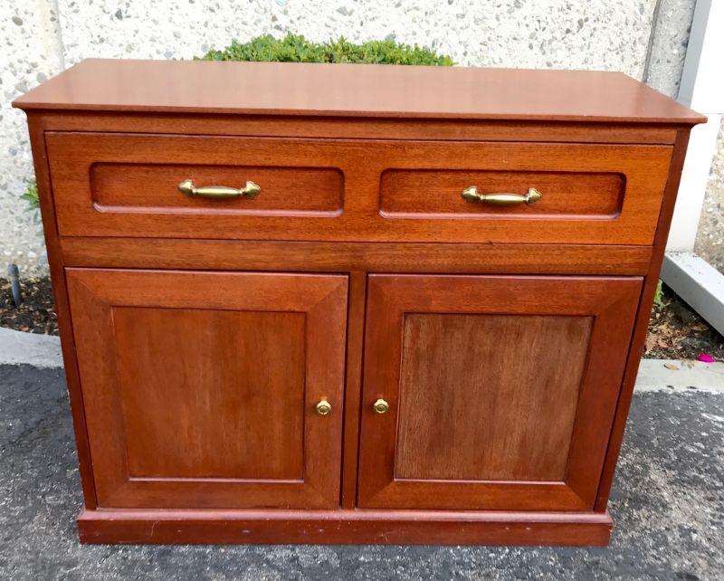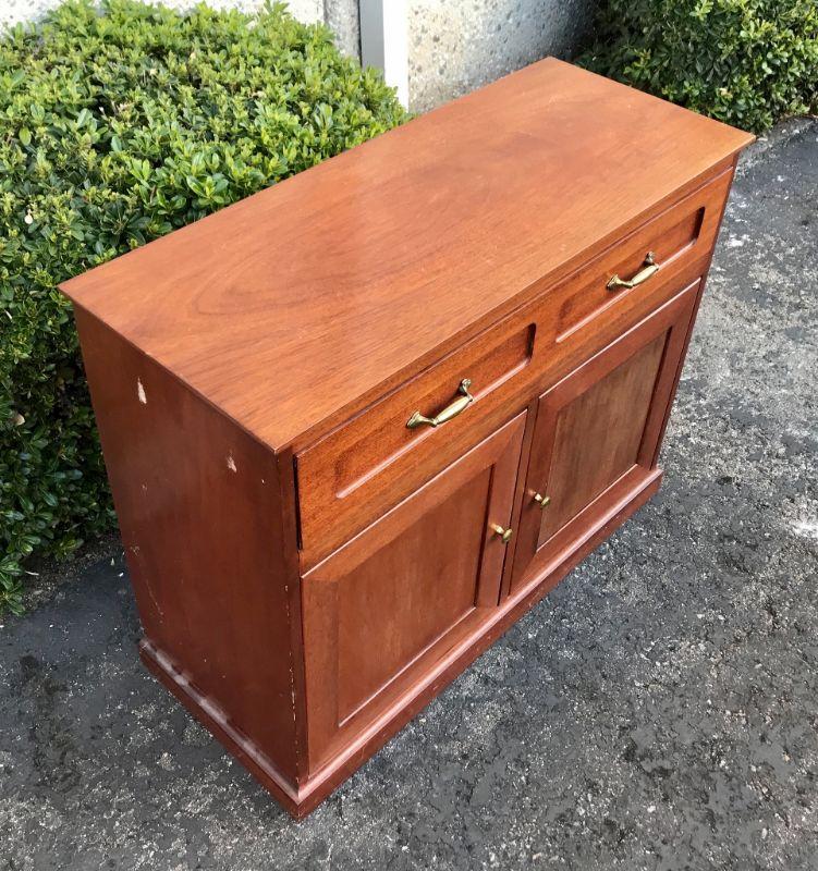 Vintage Buffet Cabinet. Single top drawer, cabinet with shelf. Sturdy. Has signs of normal use and wear. Great as is or refinish for a fresh look.