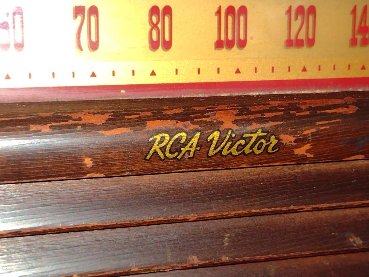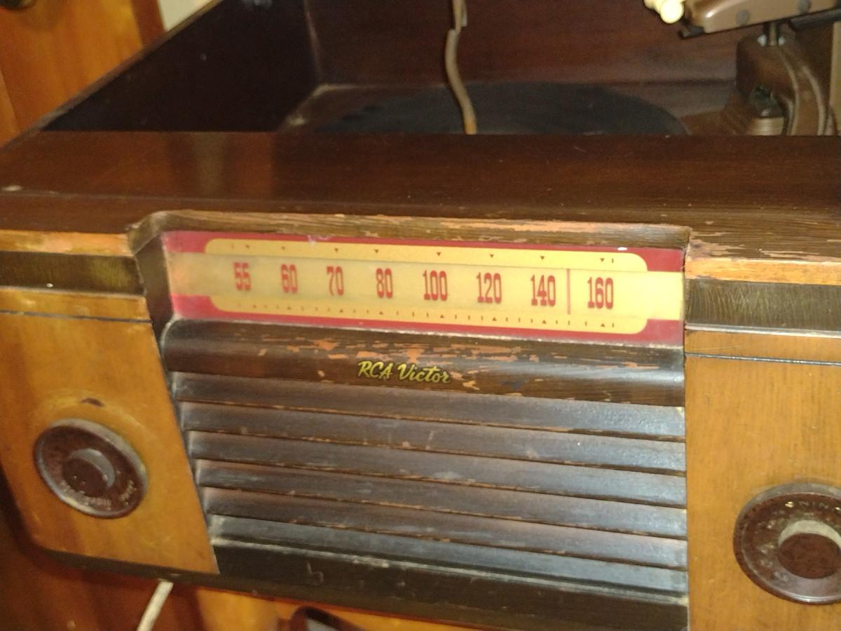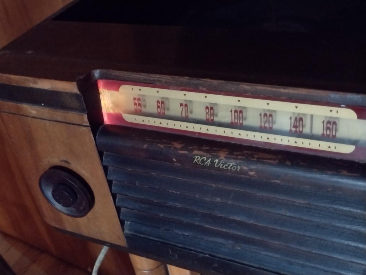 Vintage Wood Cased RCA Victor Radio/Record Player. Item powers on, record player turns, and radio works.