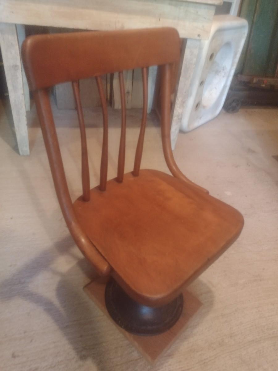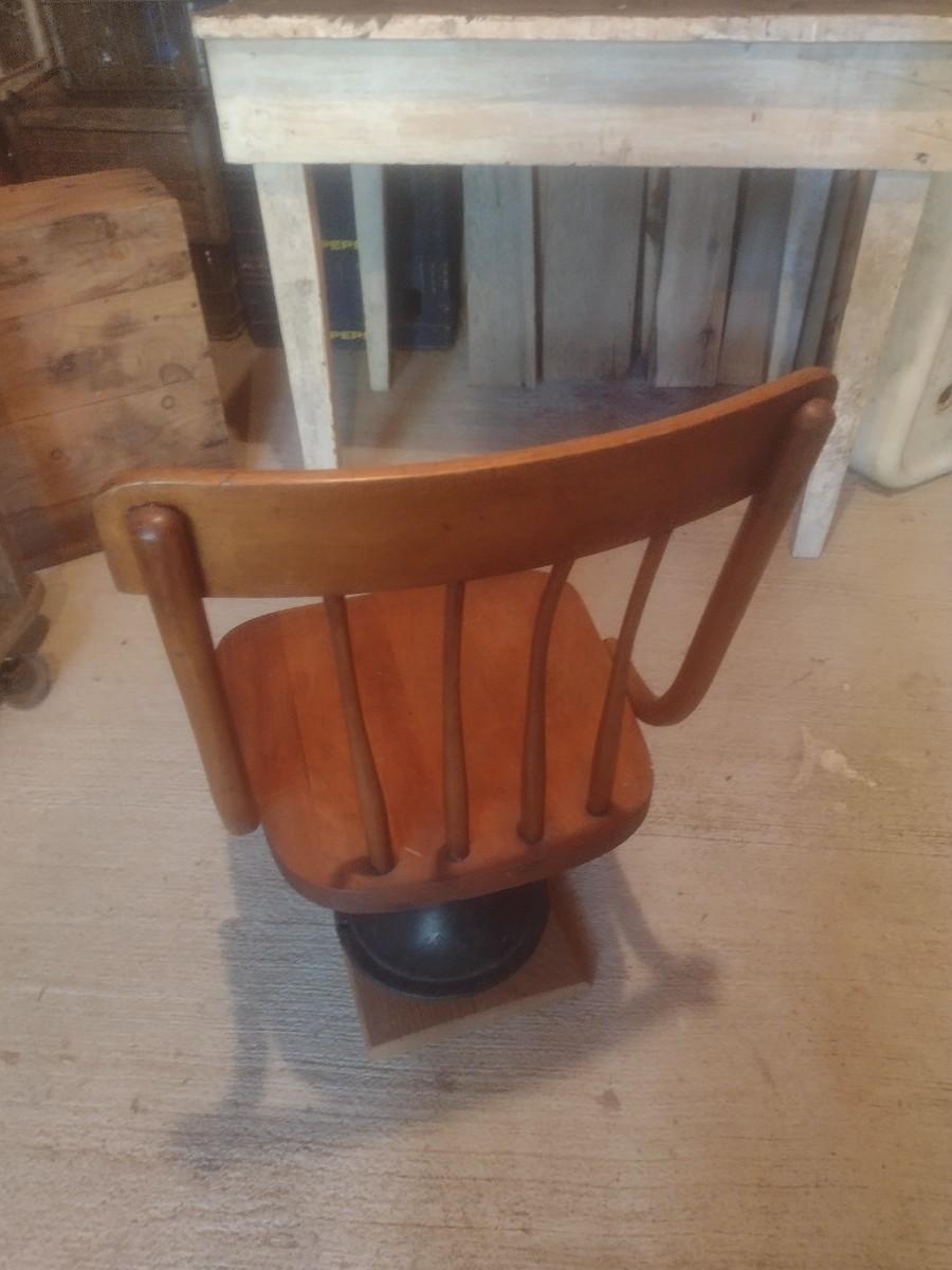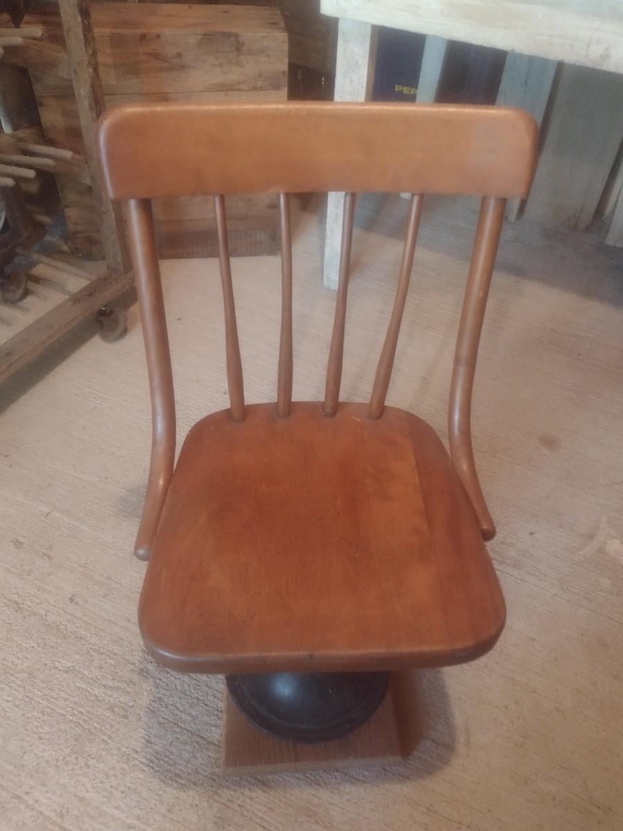 Vintage Wood Chair with Metal Pedestal