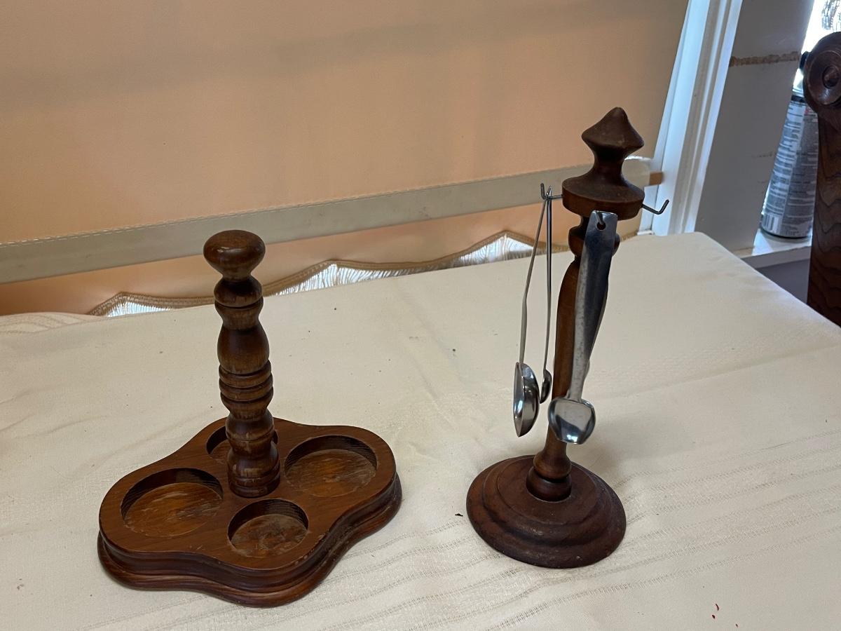 Vintage Wood Condiment Holder and Condiment Spoon Holder