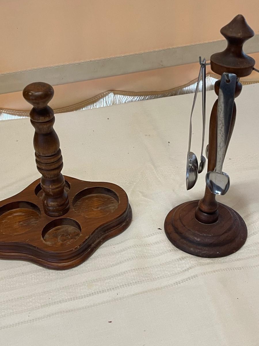 Vintage Wood Condiment Holder and Condiment Spoon Holder