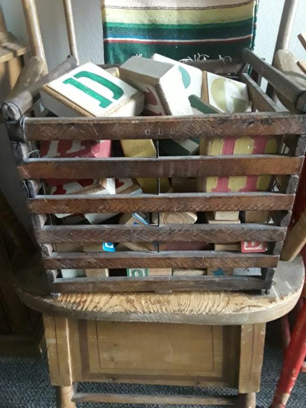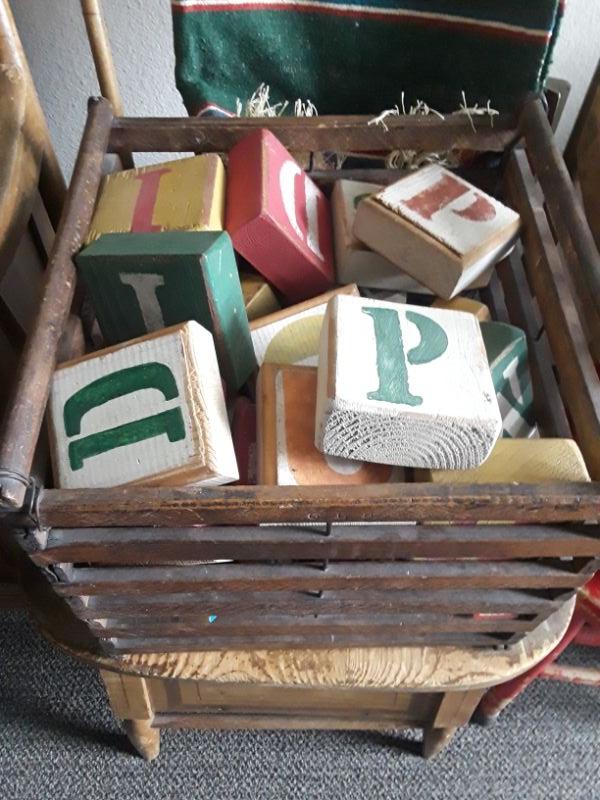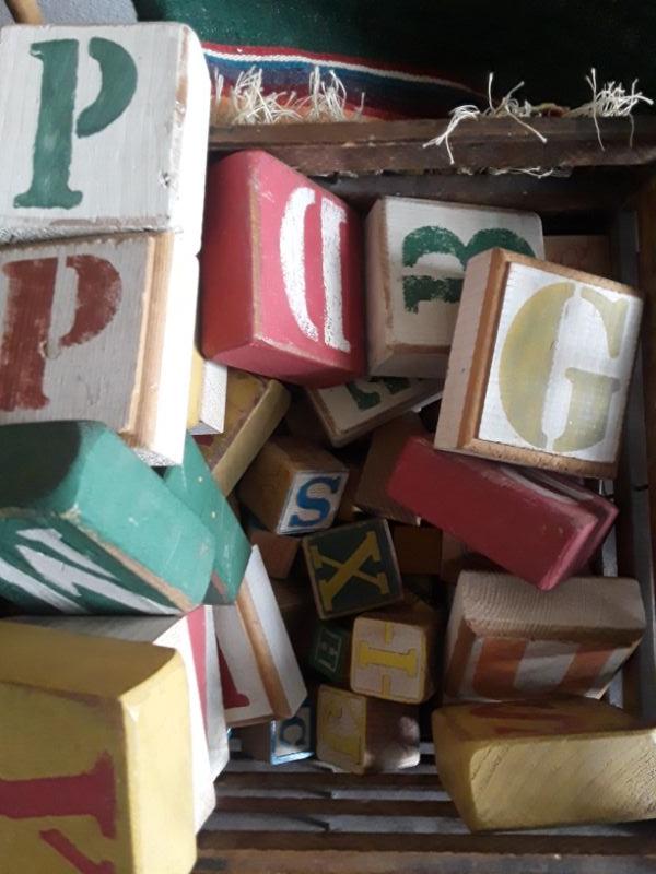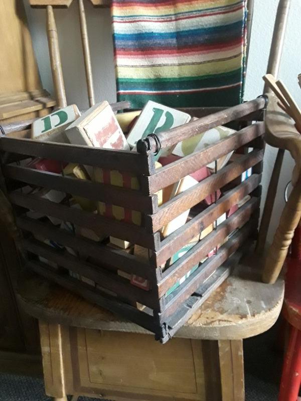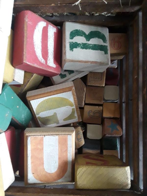Vintage Wood Crate of Wood Alphabet Blocks