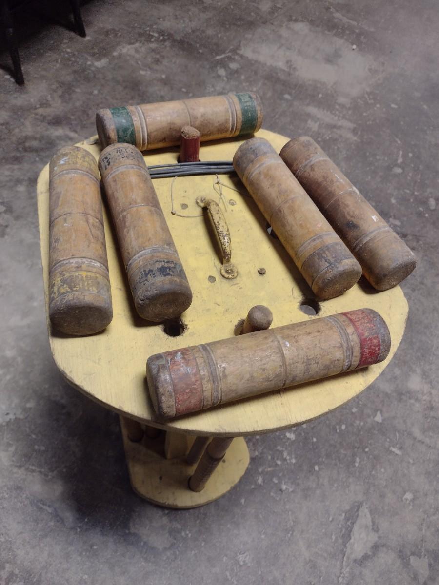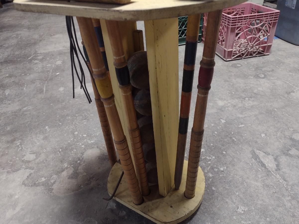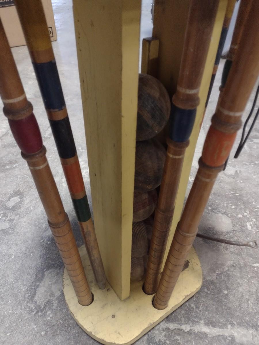 Vintage Wood Croquet Set with Stand. Not sure if set is complete