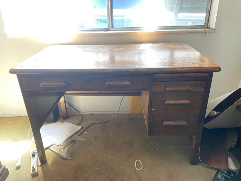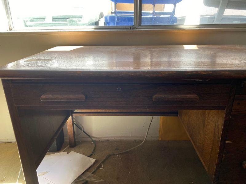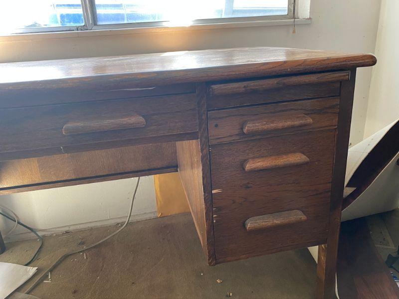Abbess Enduring Woodware vintage OAK DESK w/ four drawers