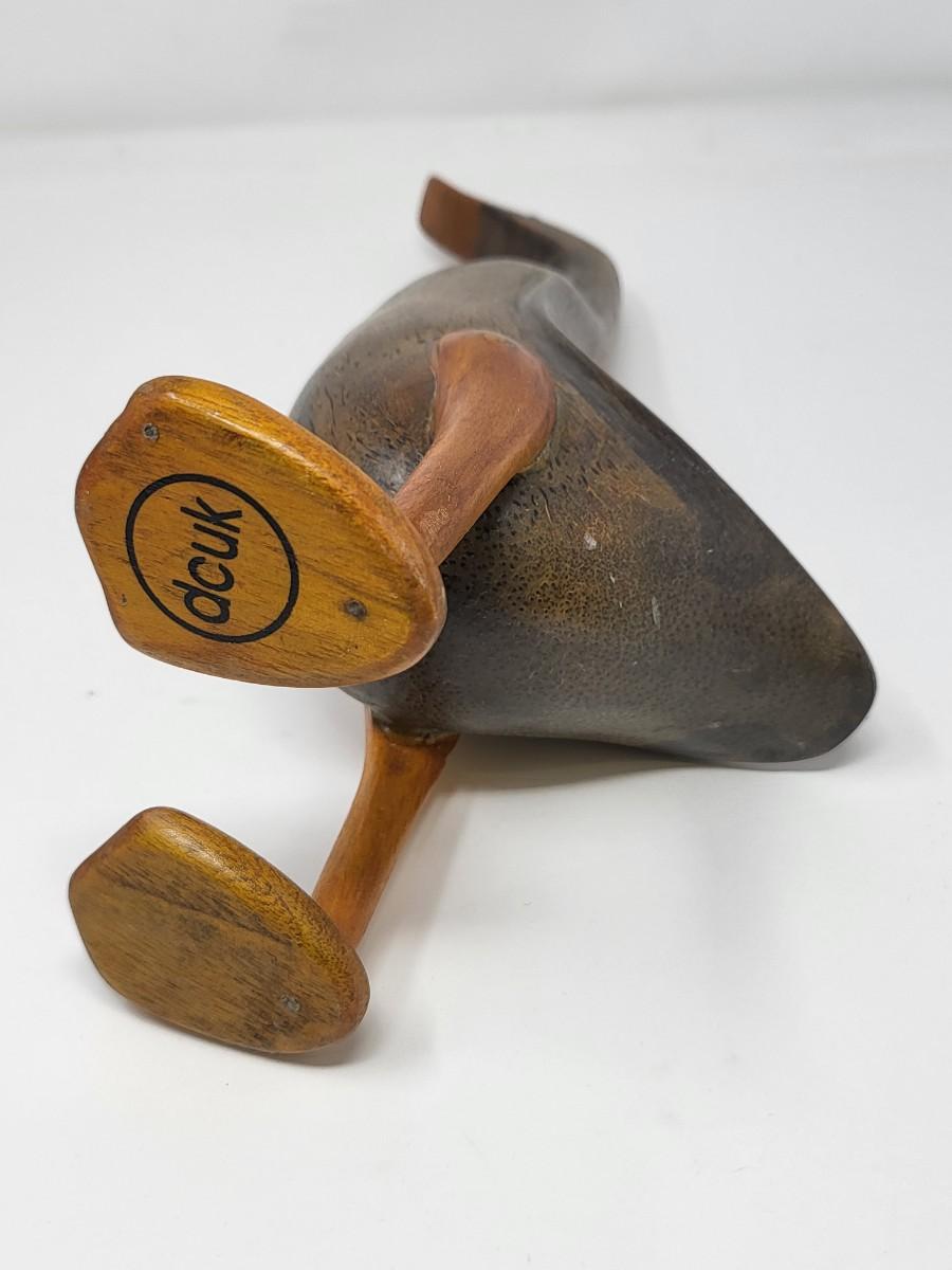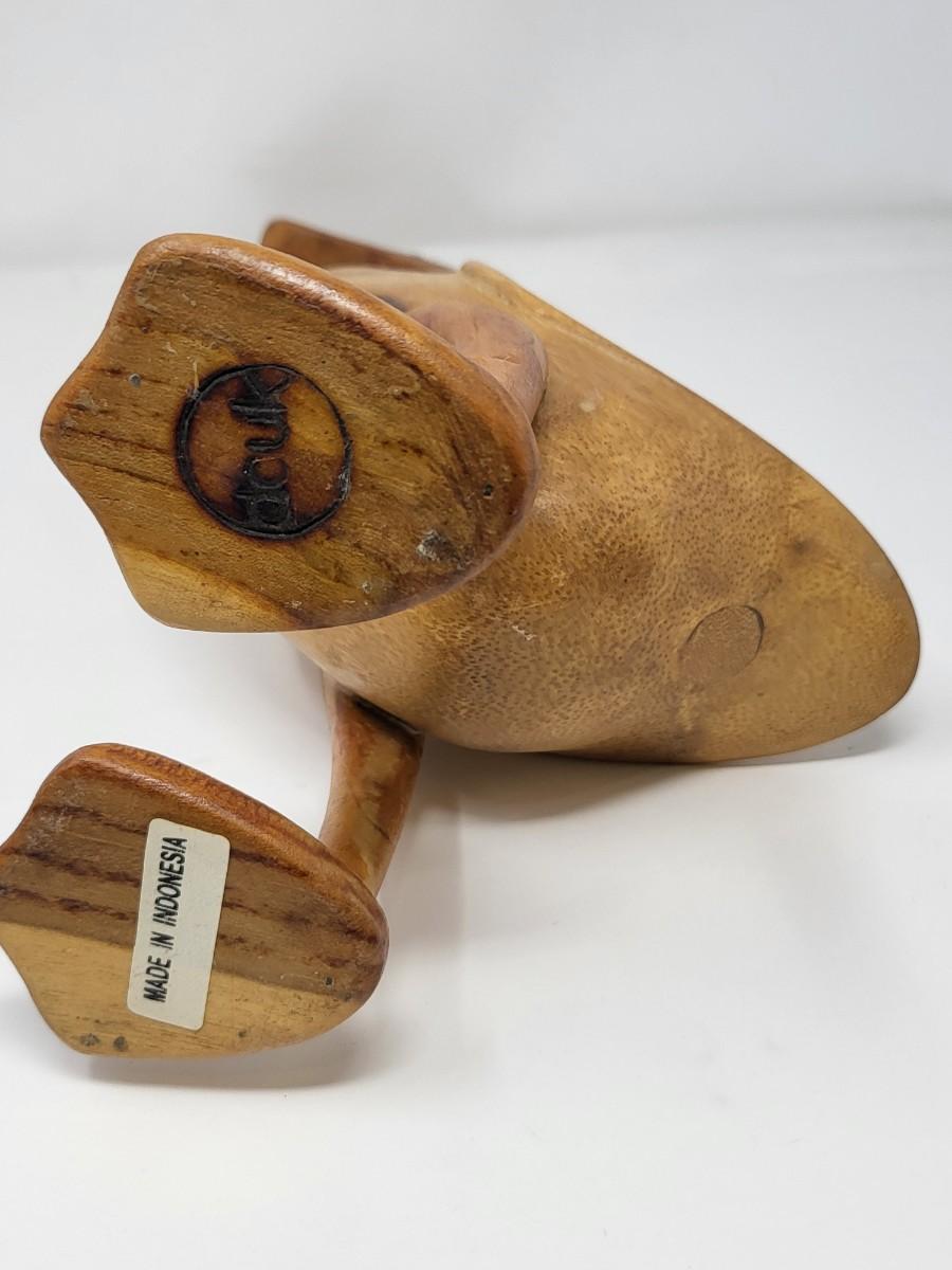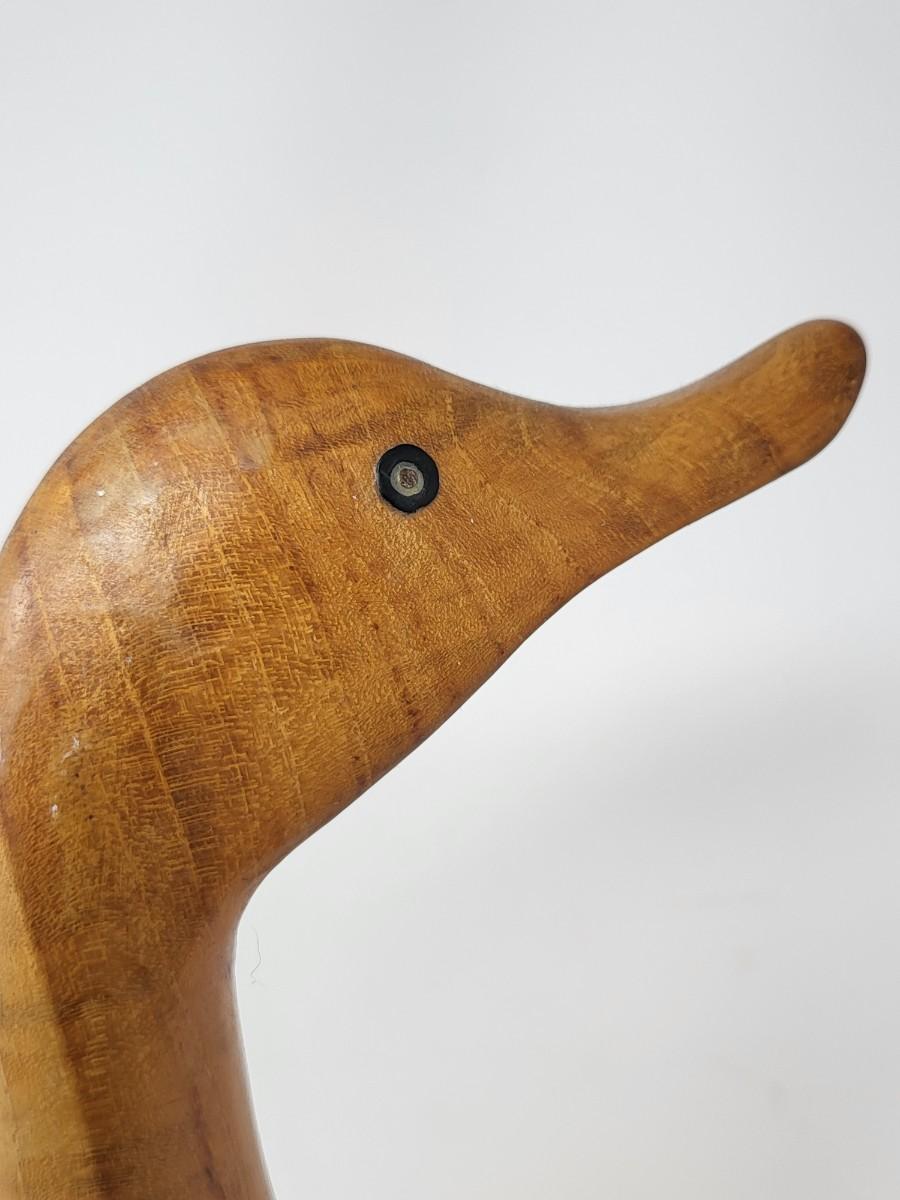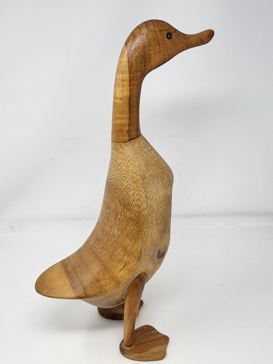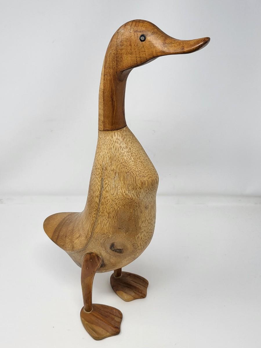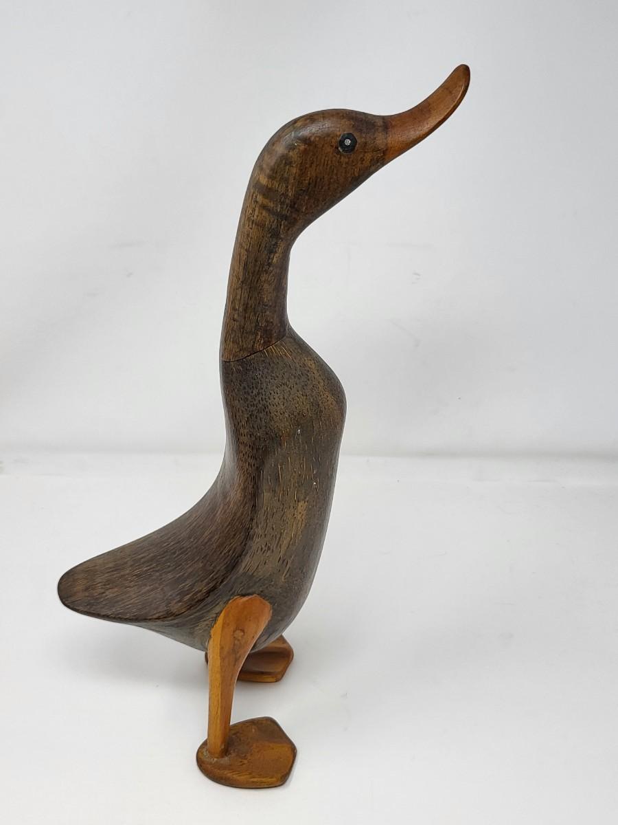 Pair of darling wood carved ducks, Indonesia. Taller, light wood one is 16" tall and shorter, dark wood one is 13.5" tall.