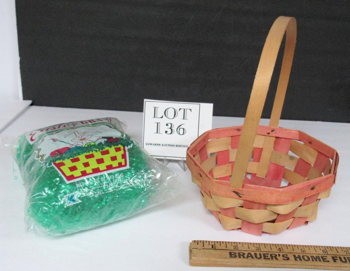 Vintage Wood Easter Basket, Vintage Kmart Easter Grass Unopened Bag