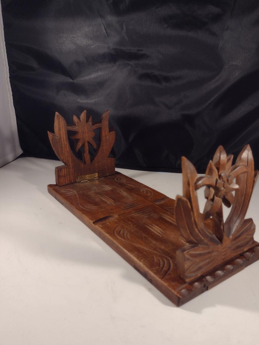 Vintage Wood Expanding Shelf Folding Bookends Adjustable 12"-18"