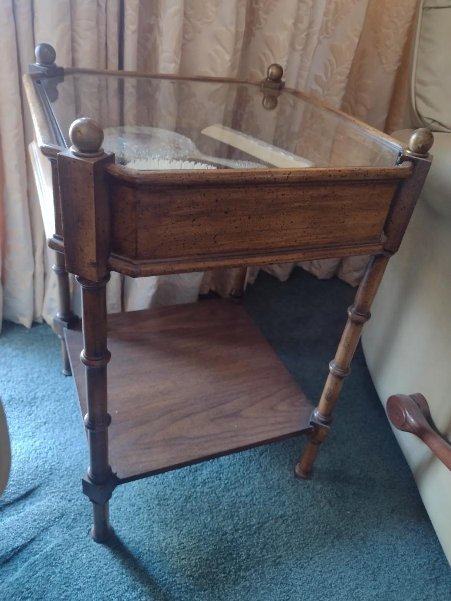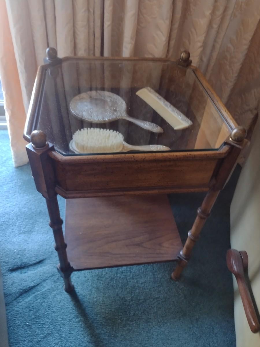 Vintage Wood Finish Curio Display Side Table (No Contents)