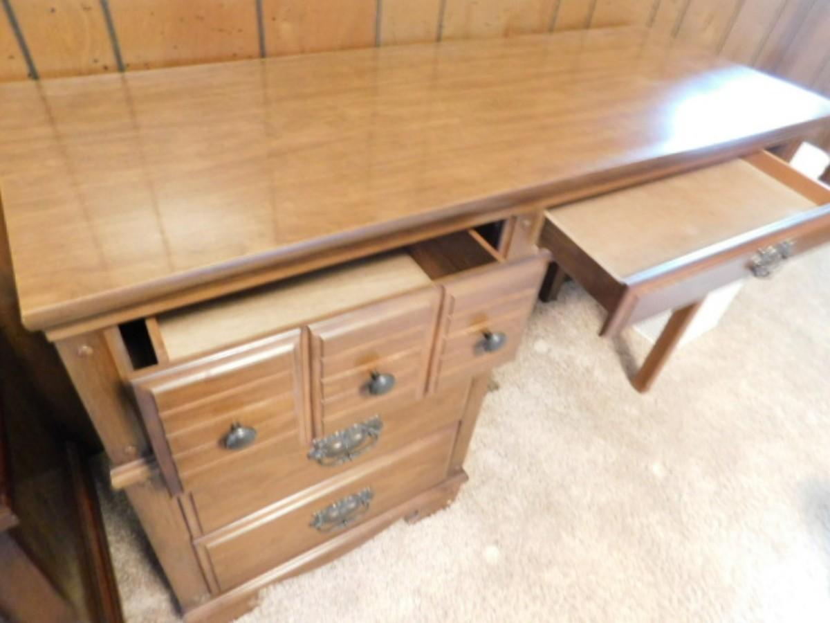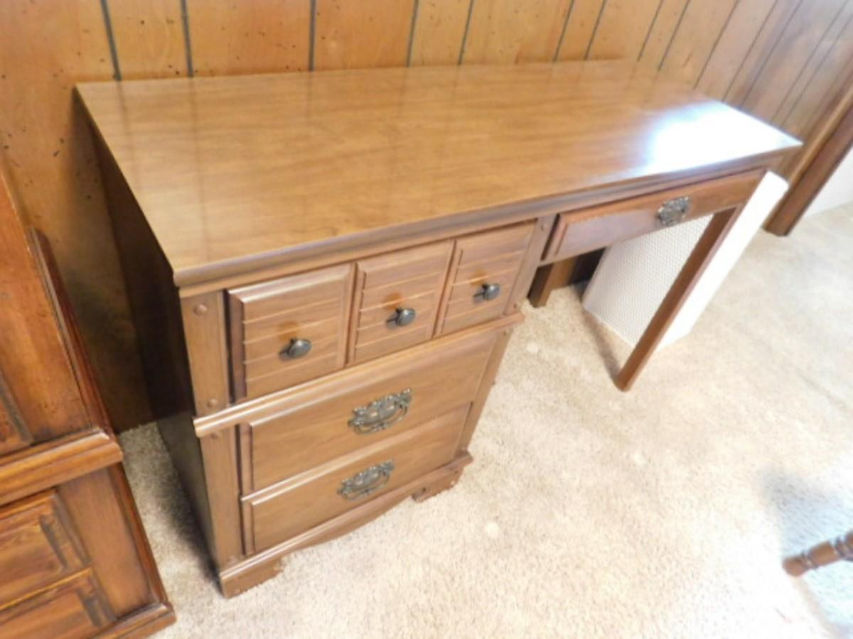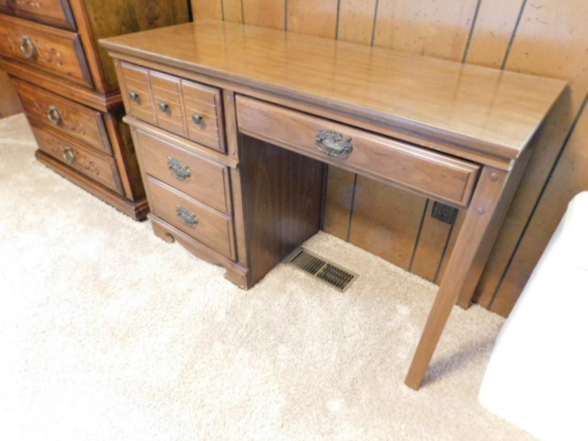 Vintage Wood Finish Knee Hole Desk. Upstairs item. Please bring assistance to remove from home.