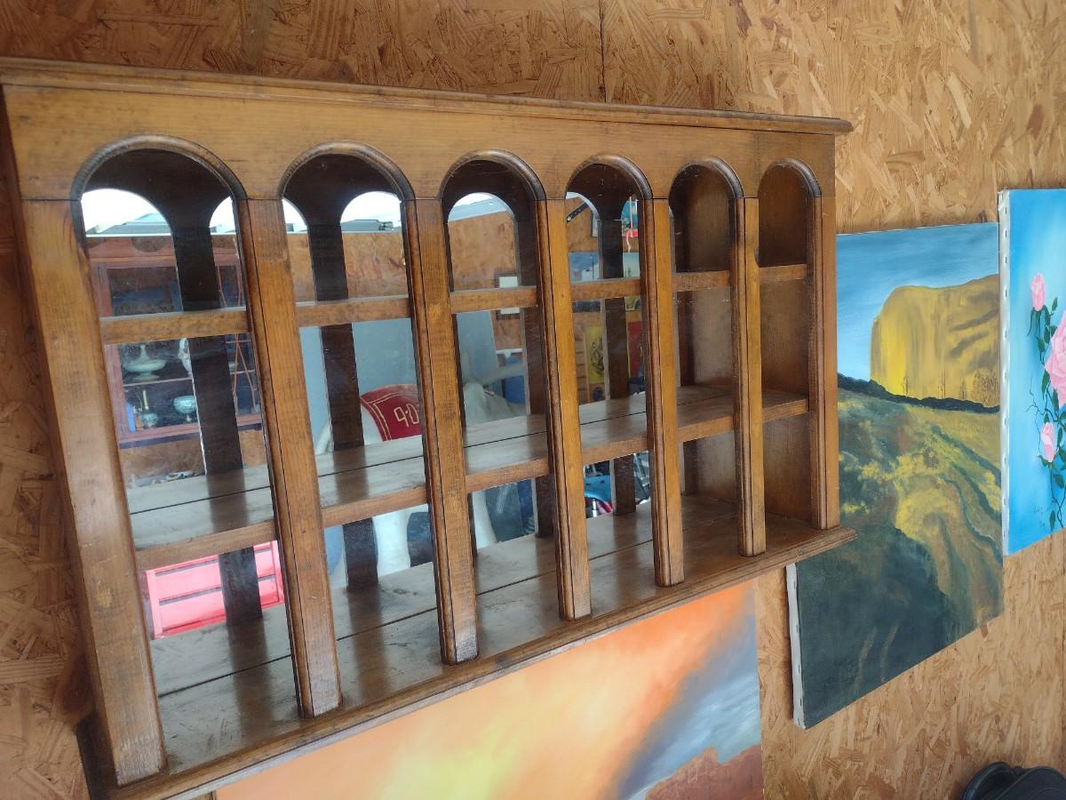 Vintage Wood Finish Multi-Shelf Wall Curio Display Cabinet