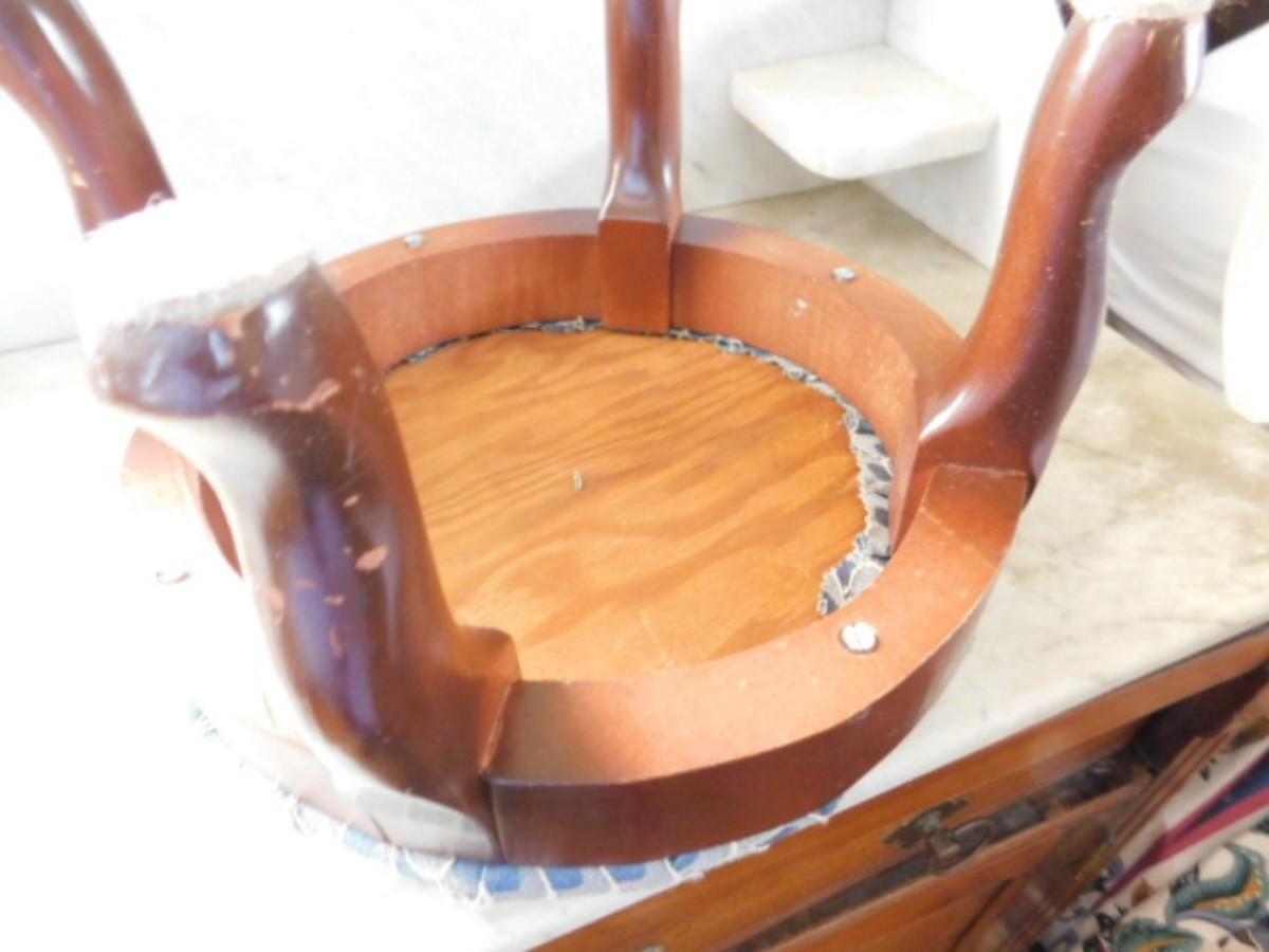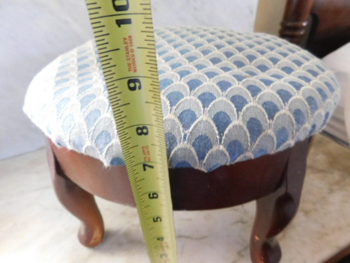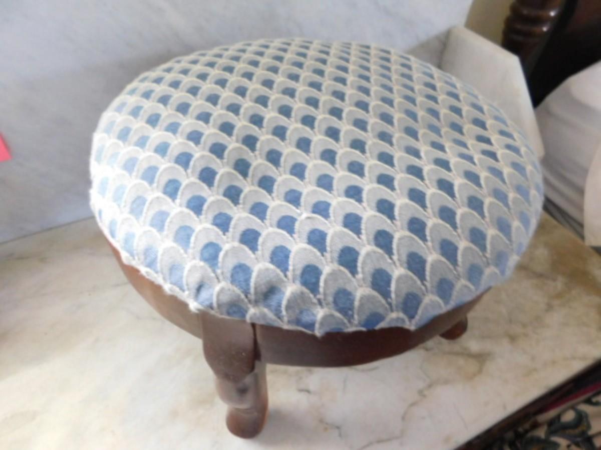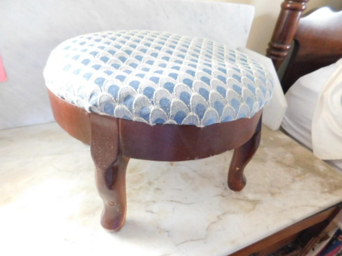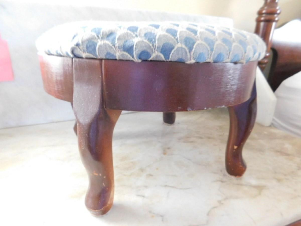 Vintage Wood Frame Foot Stool with Shell Pattern Upholstery