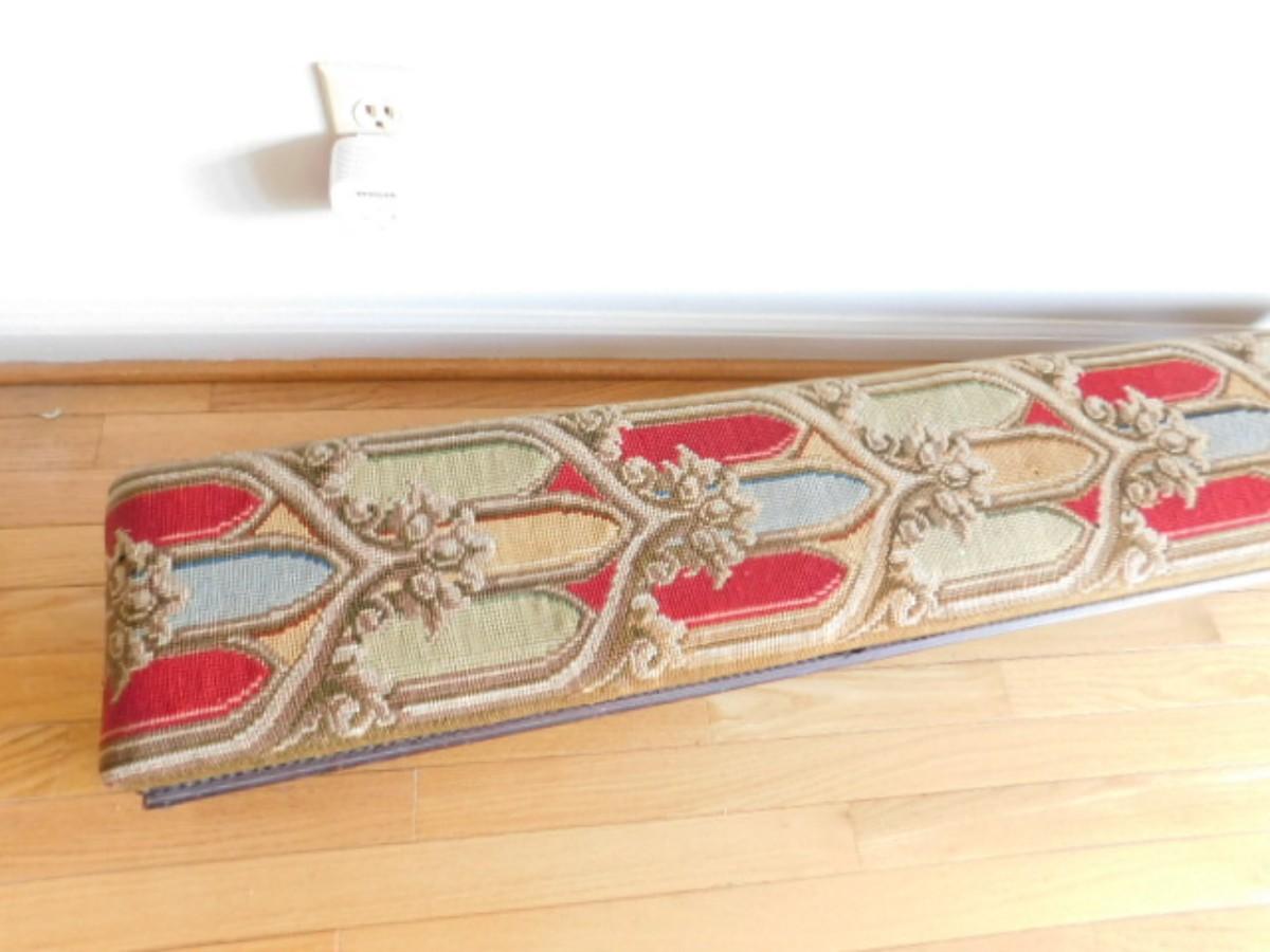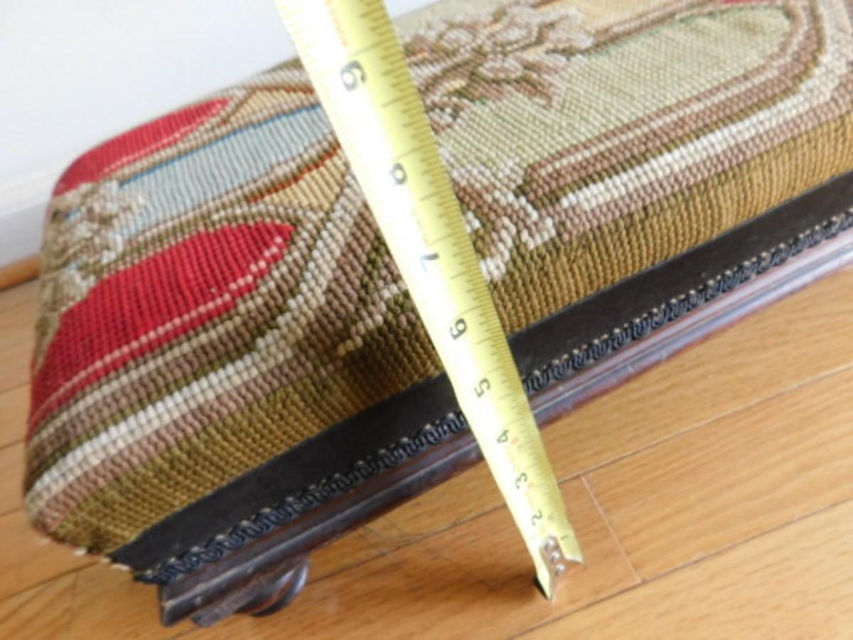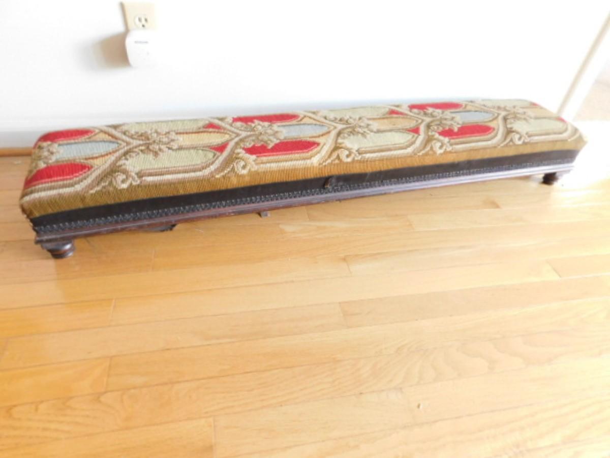 Vintage Wood Frame Kneeling Bench with Needlework Cushion