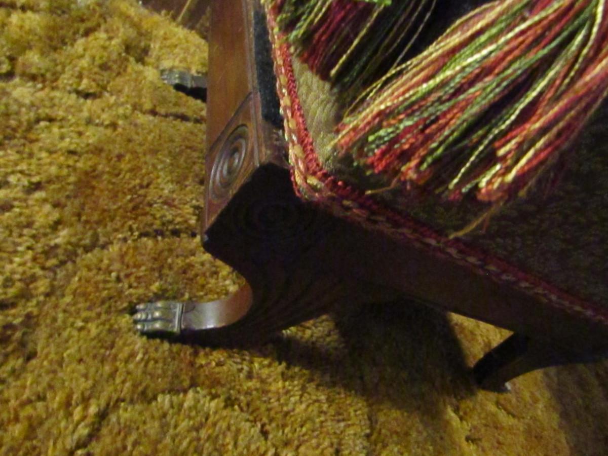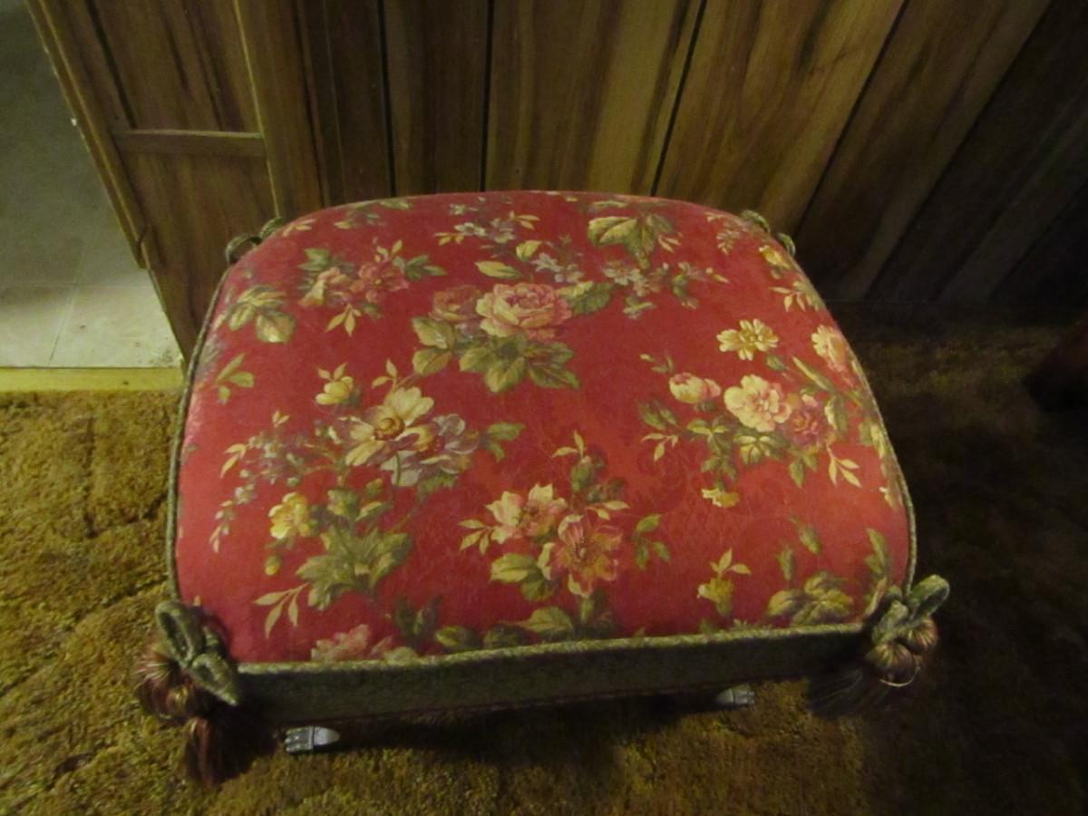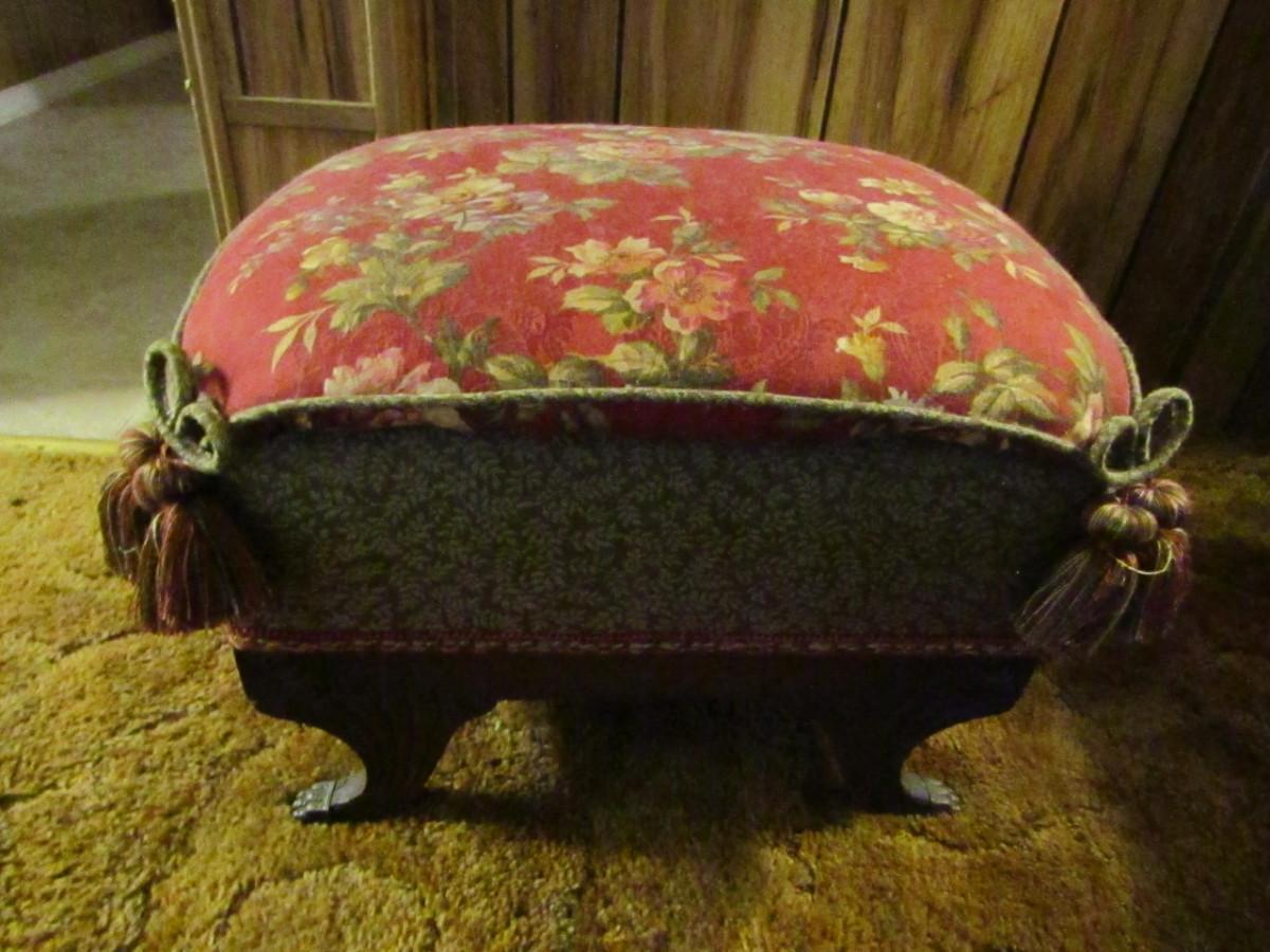Vintage Wood Frame Ottoman with Upholstered Top with Claw Feet