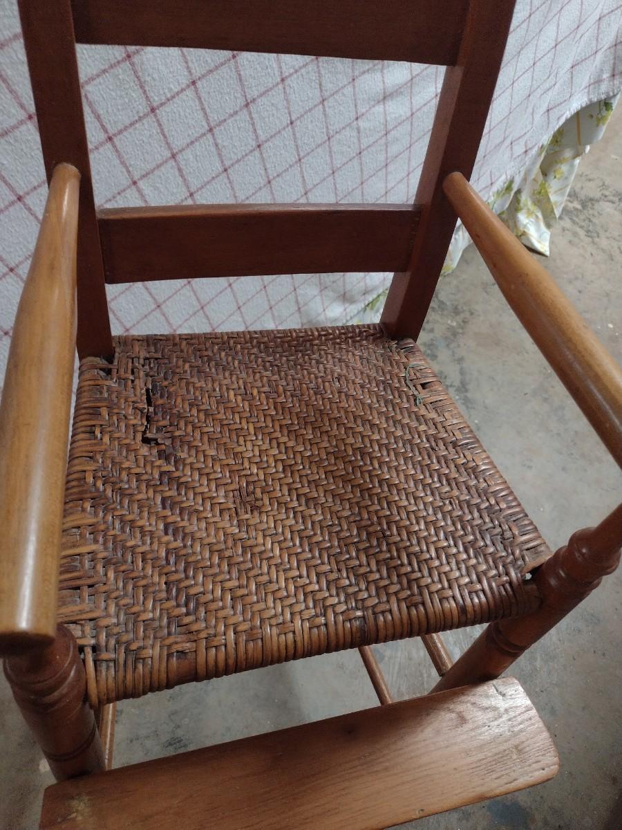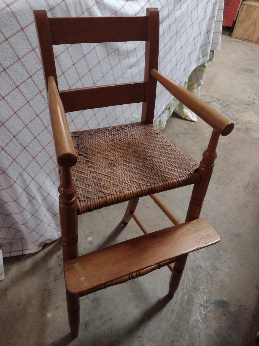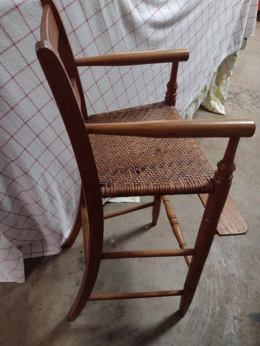 Vintage Wood Frame Rush Seat Child's Highchair