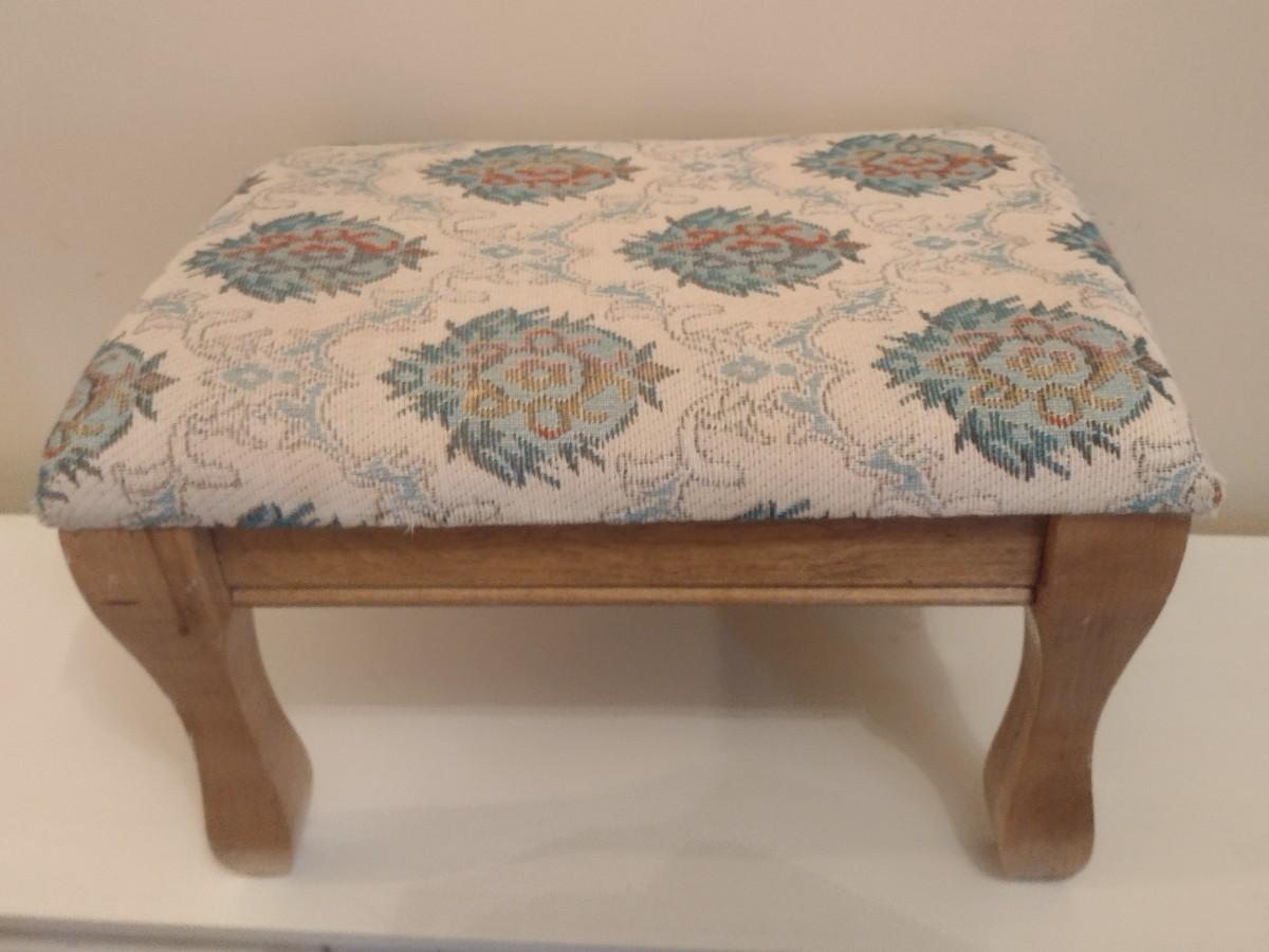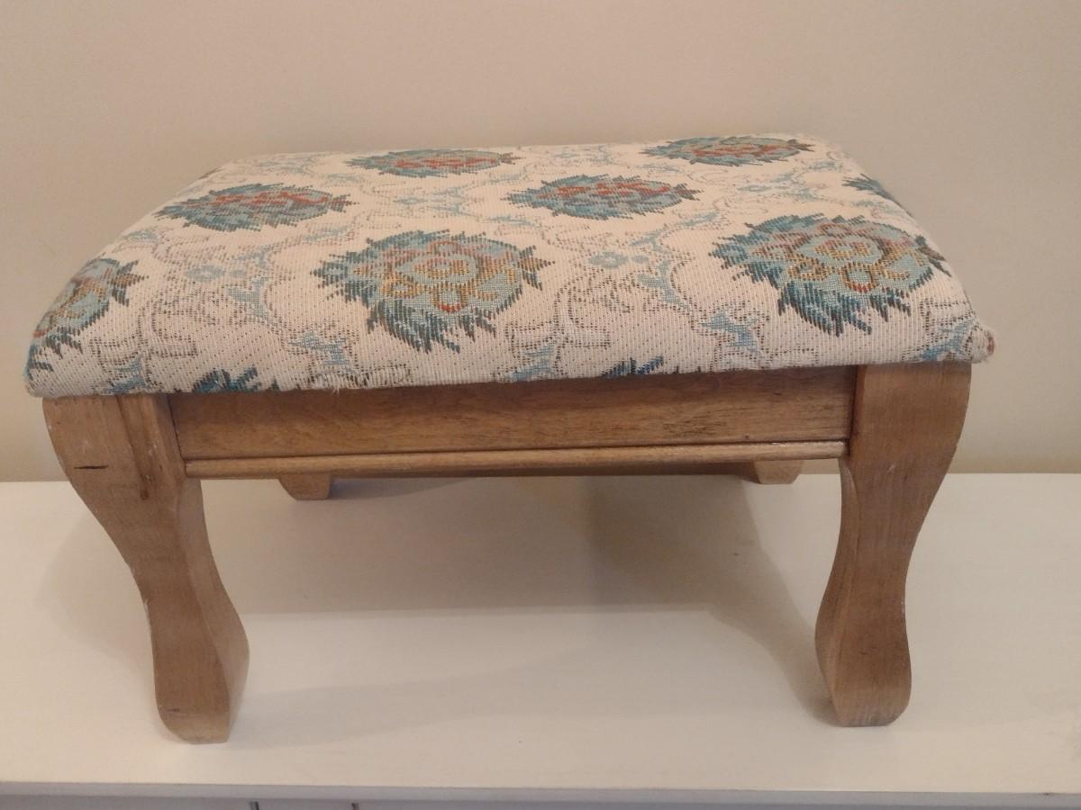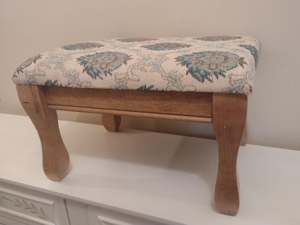 Vintage Wood Frame Upholstered Foot Stool