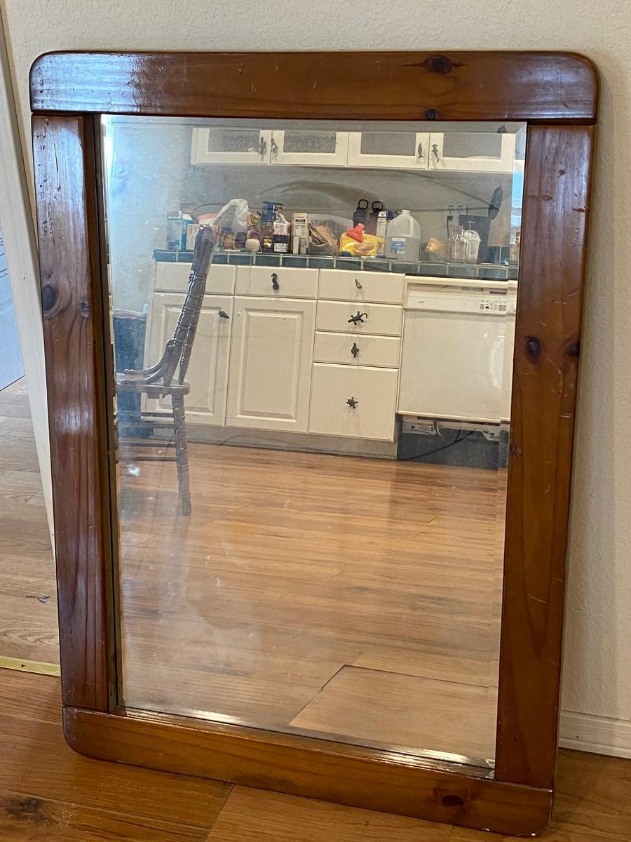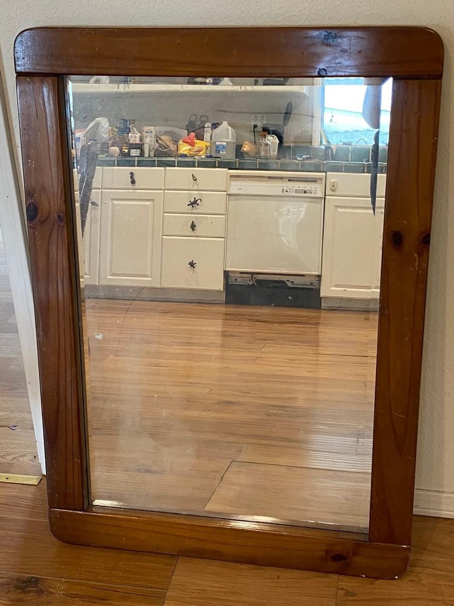 Vintage wood frame wall mirror. Can be hung either direction. About 2'x3' size.