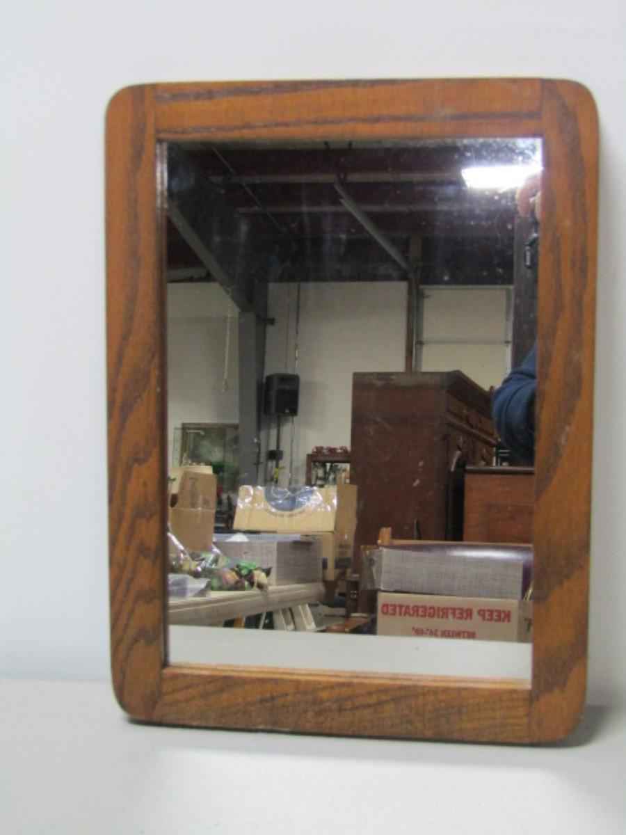 Vintage Solid Oak Framed Mirror- Ready for Wall Hanging- Approx. 12" x 16"