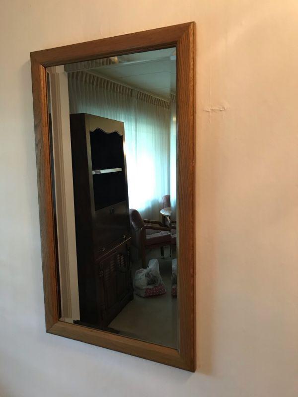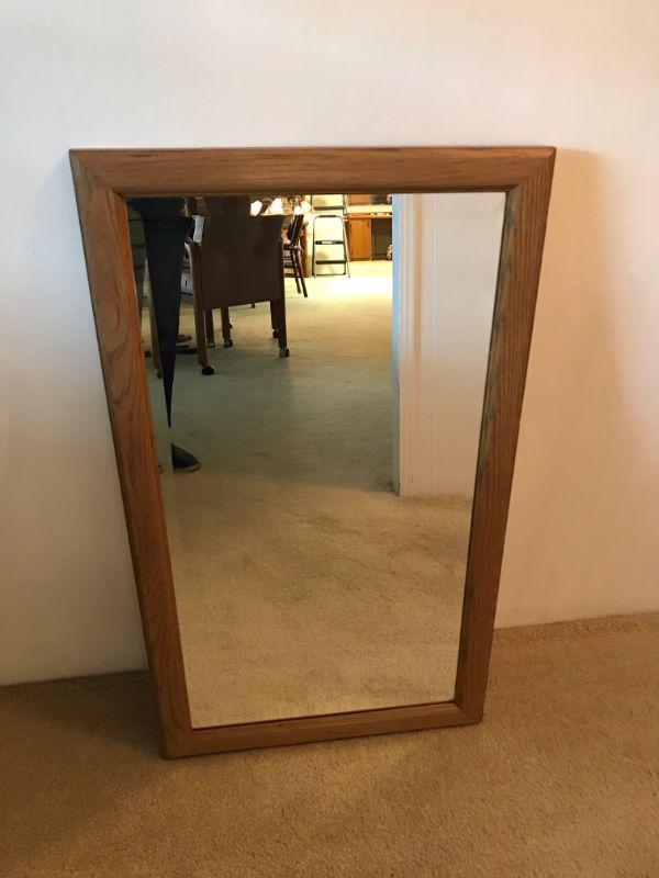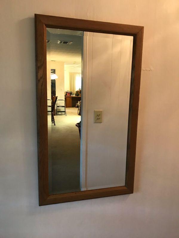 Vintage Wood Framed Mirror With Beveled Edge (134)