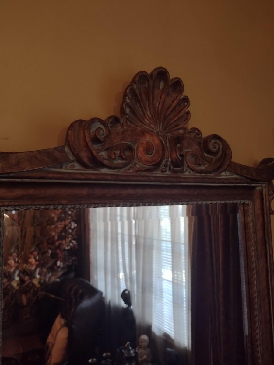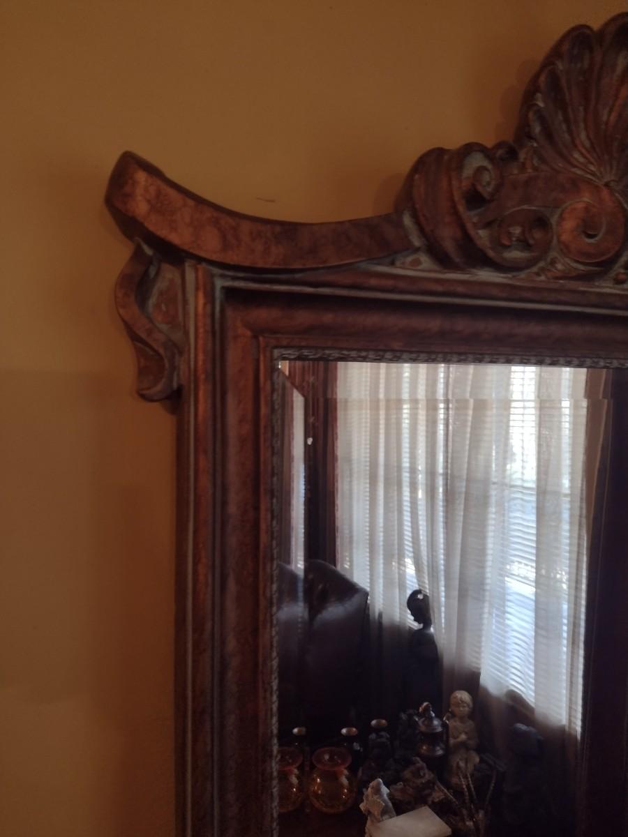 Vintage Wood Framed Wall Mirror with Beveled Glass