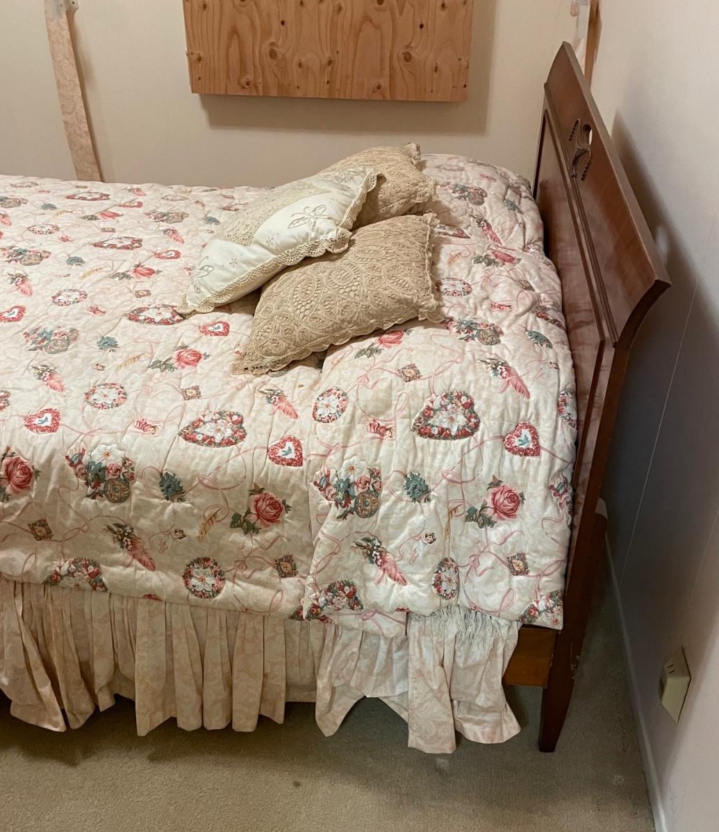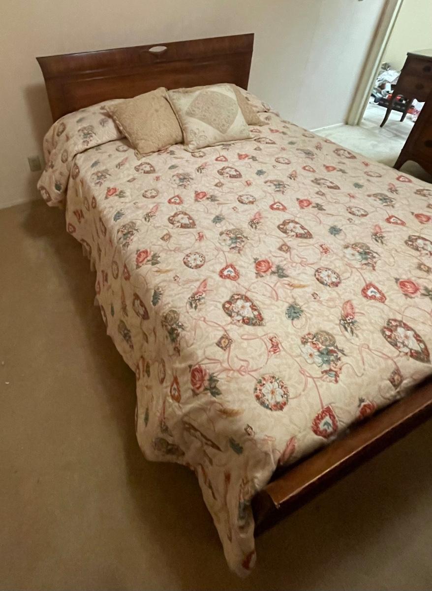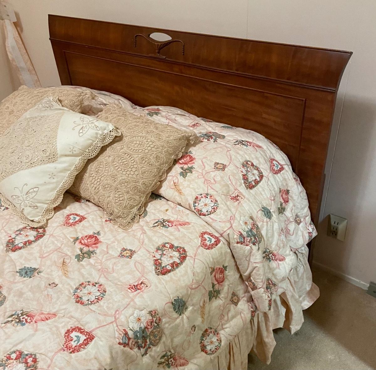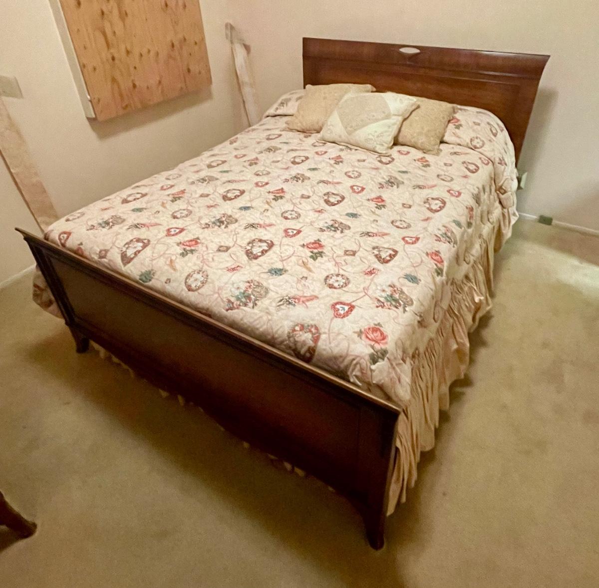 Vintage Wood Full Size Bed, ornate Headboard and Footboard
