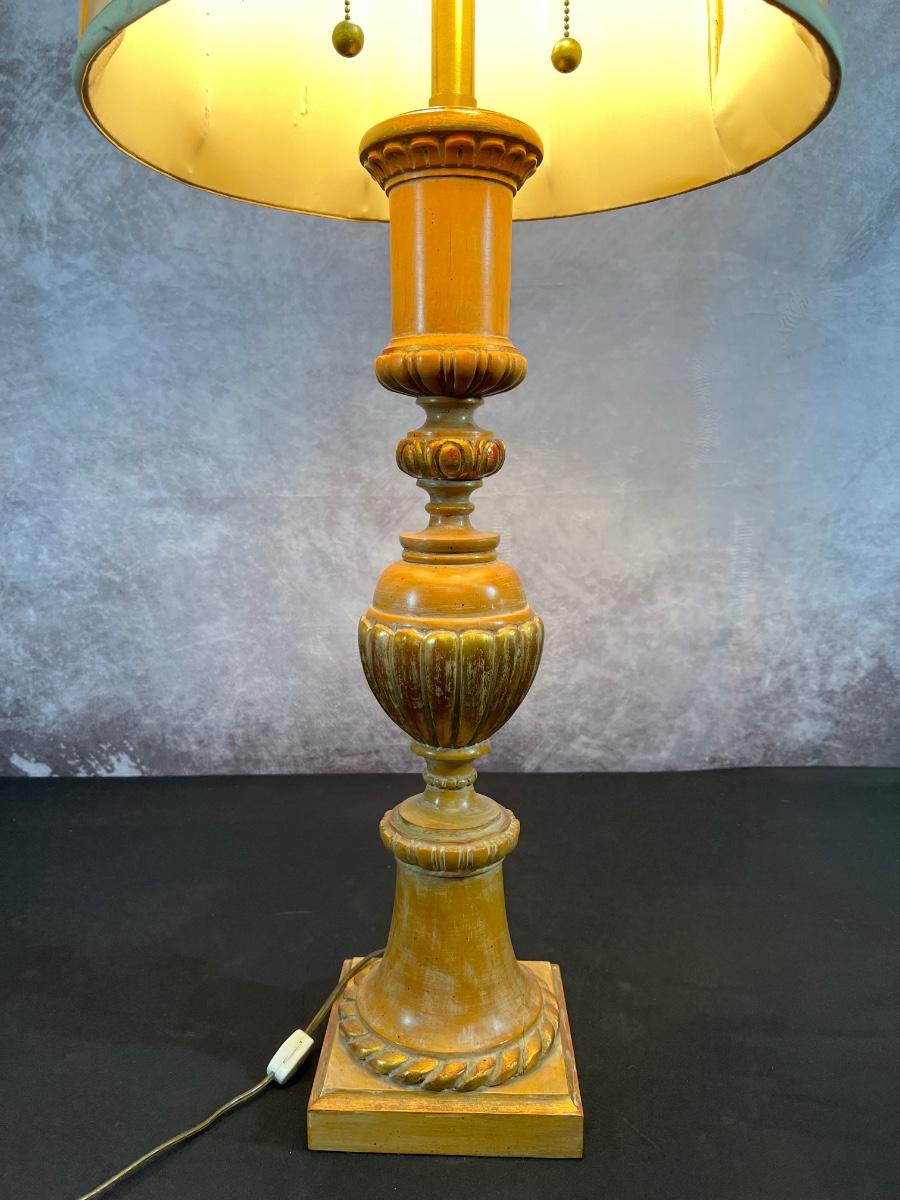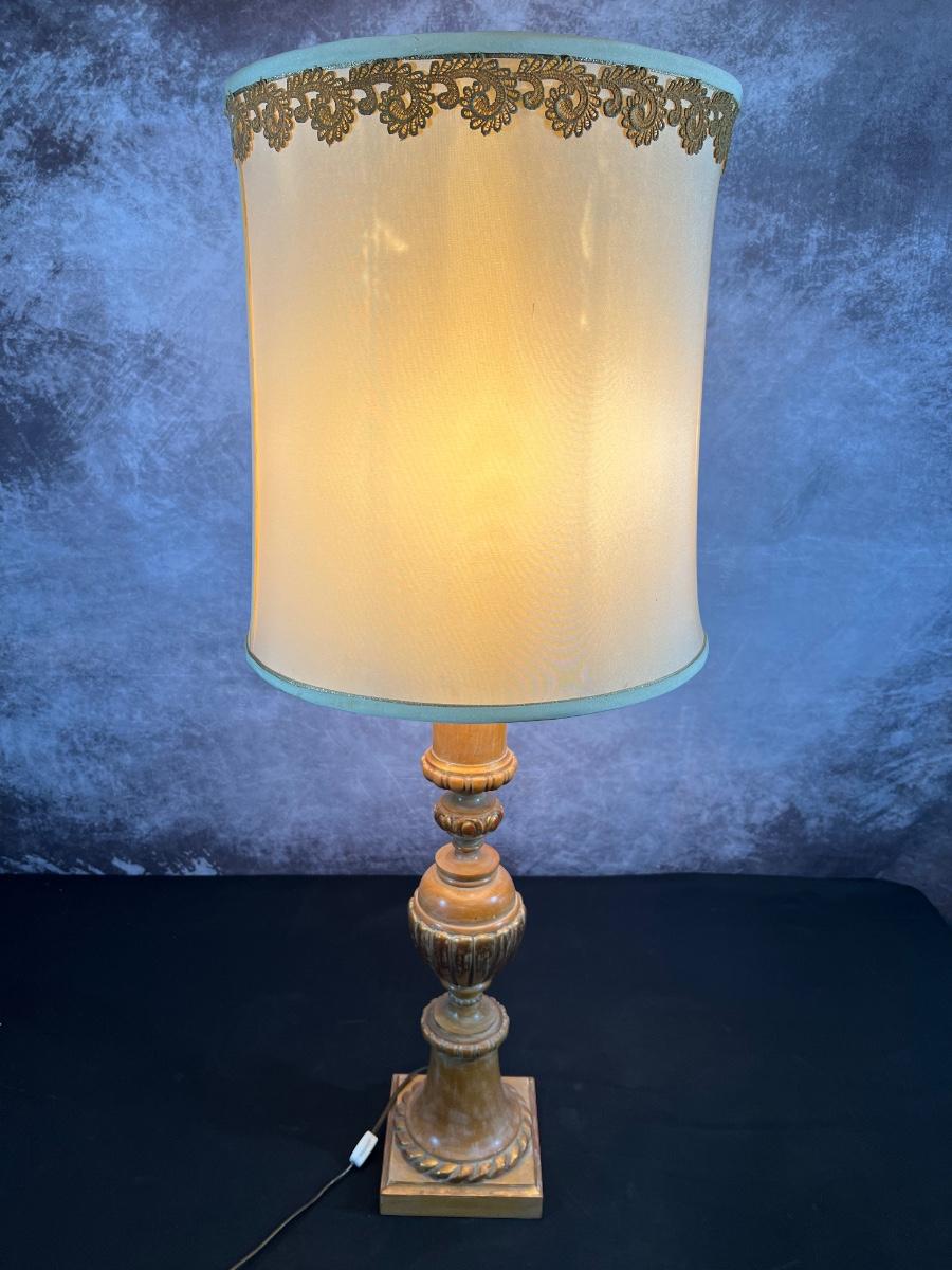Vintage Wood & Gold Lamp 40.5"H W/ 6" Base