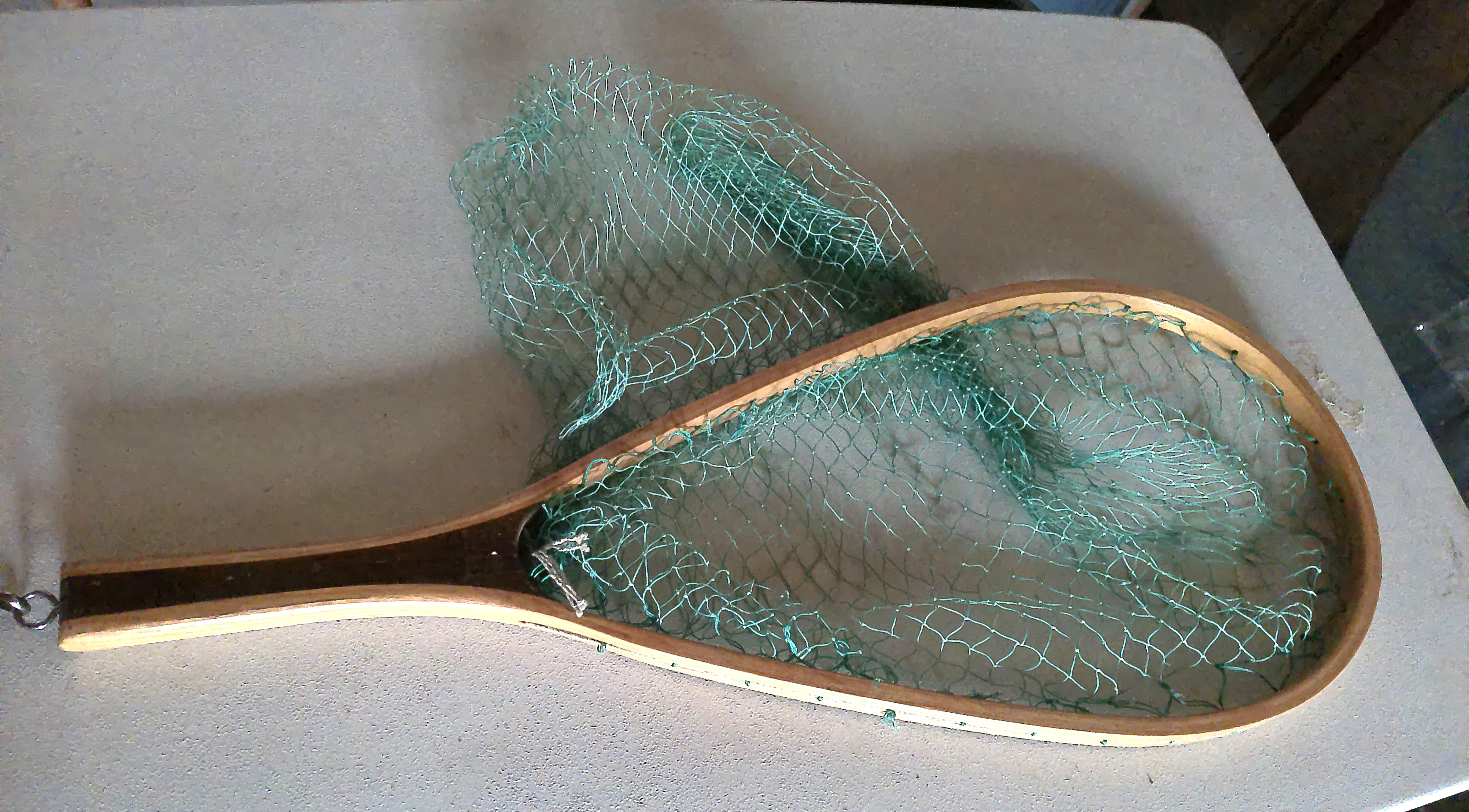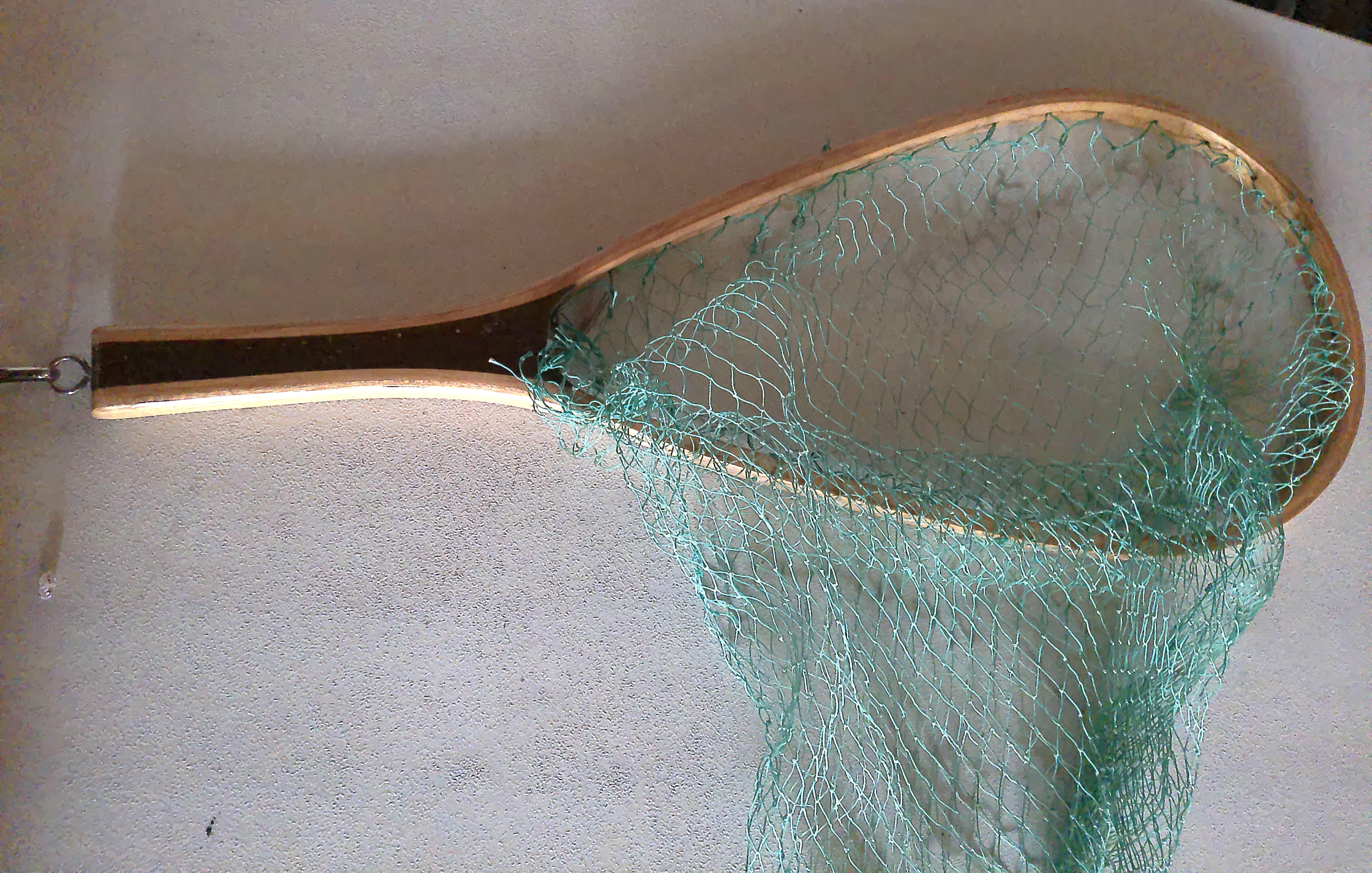 Vintage Wood Fish Net, beautiful two-tone wood hand fishing net in good condition