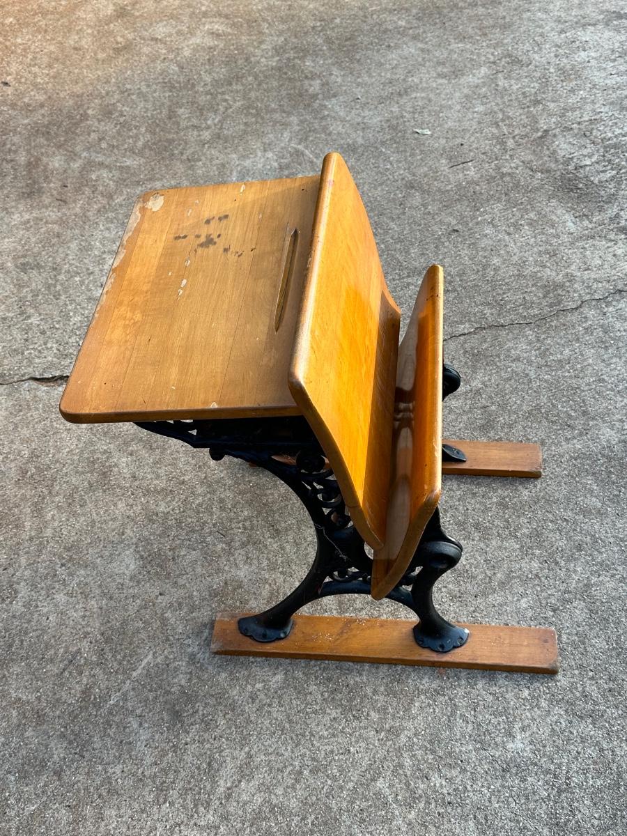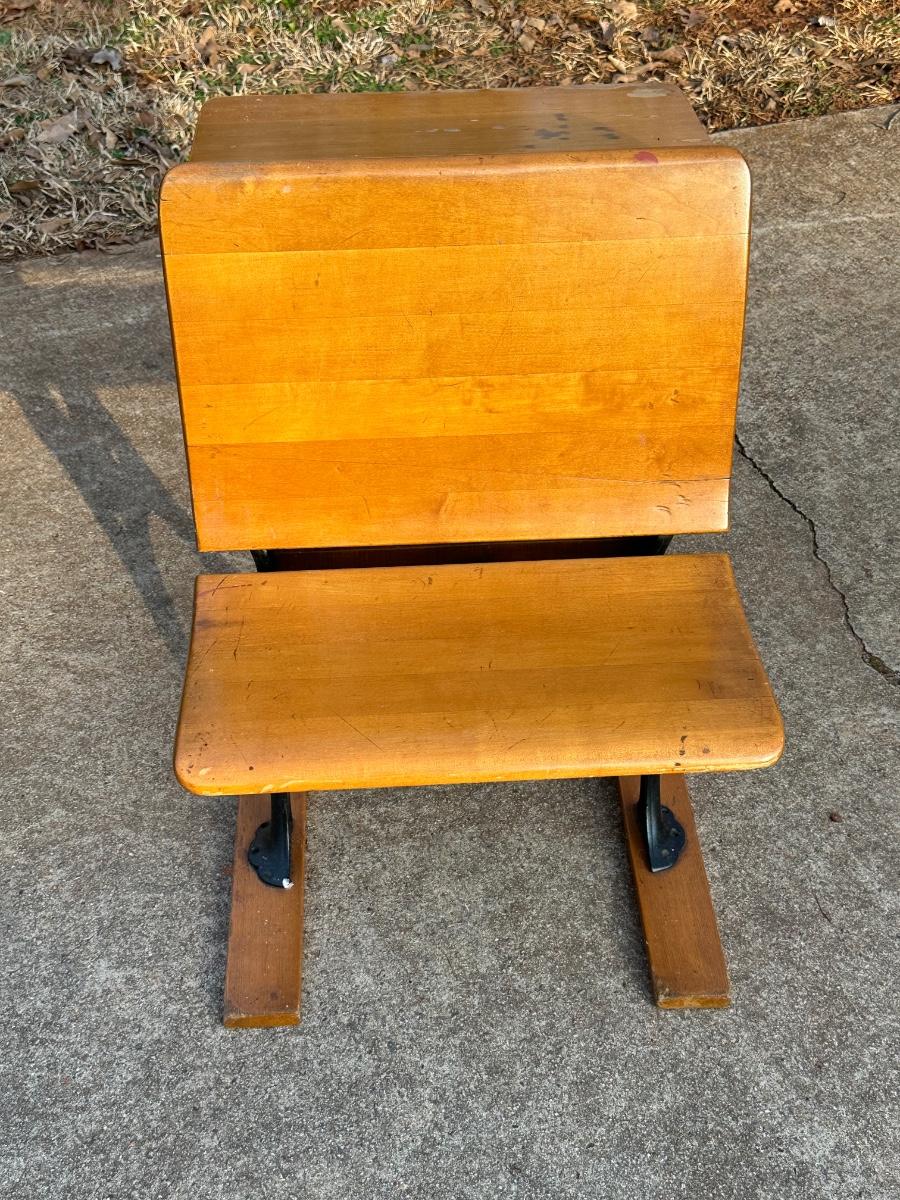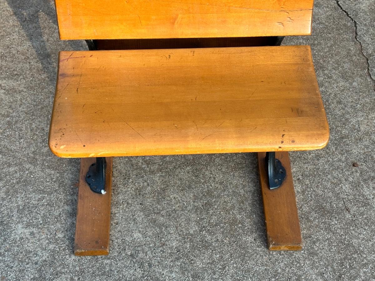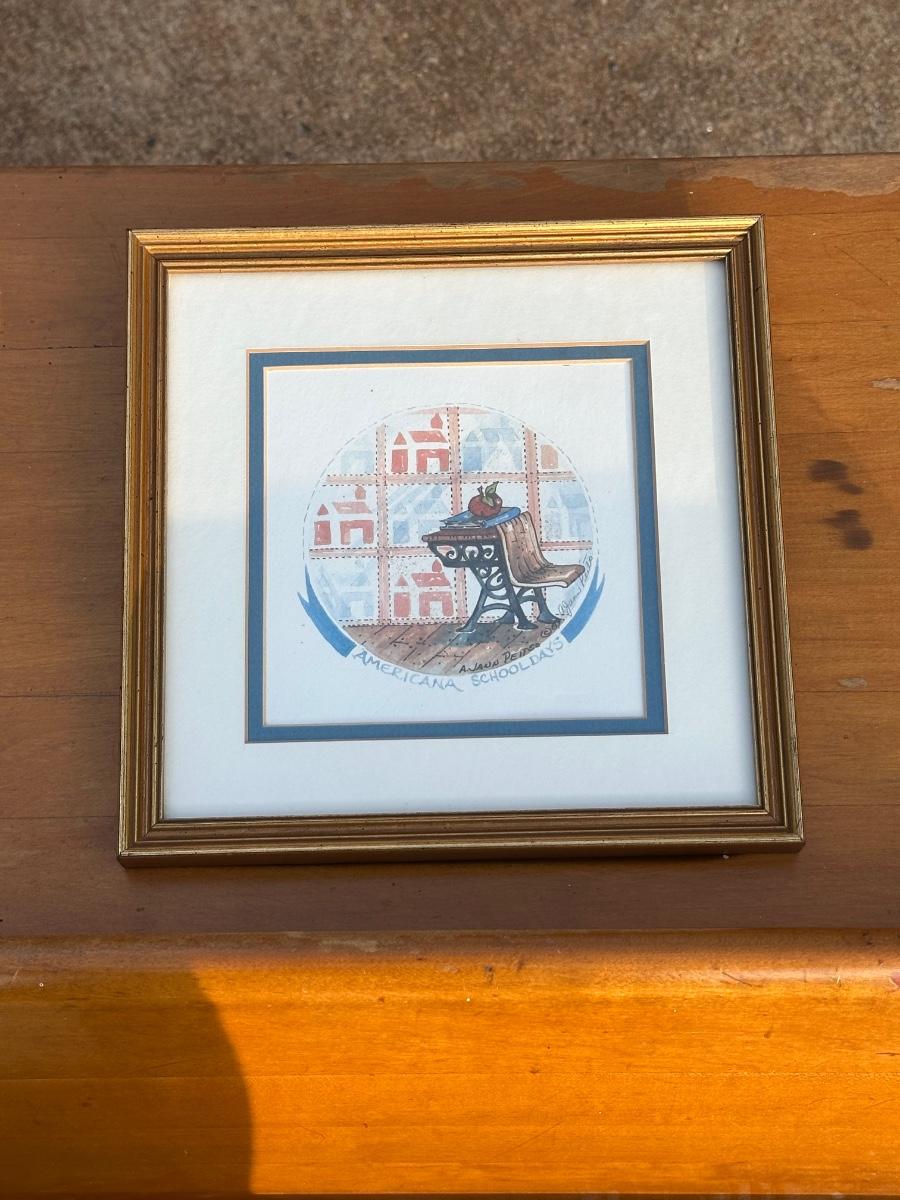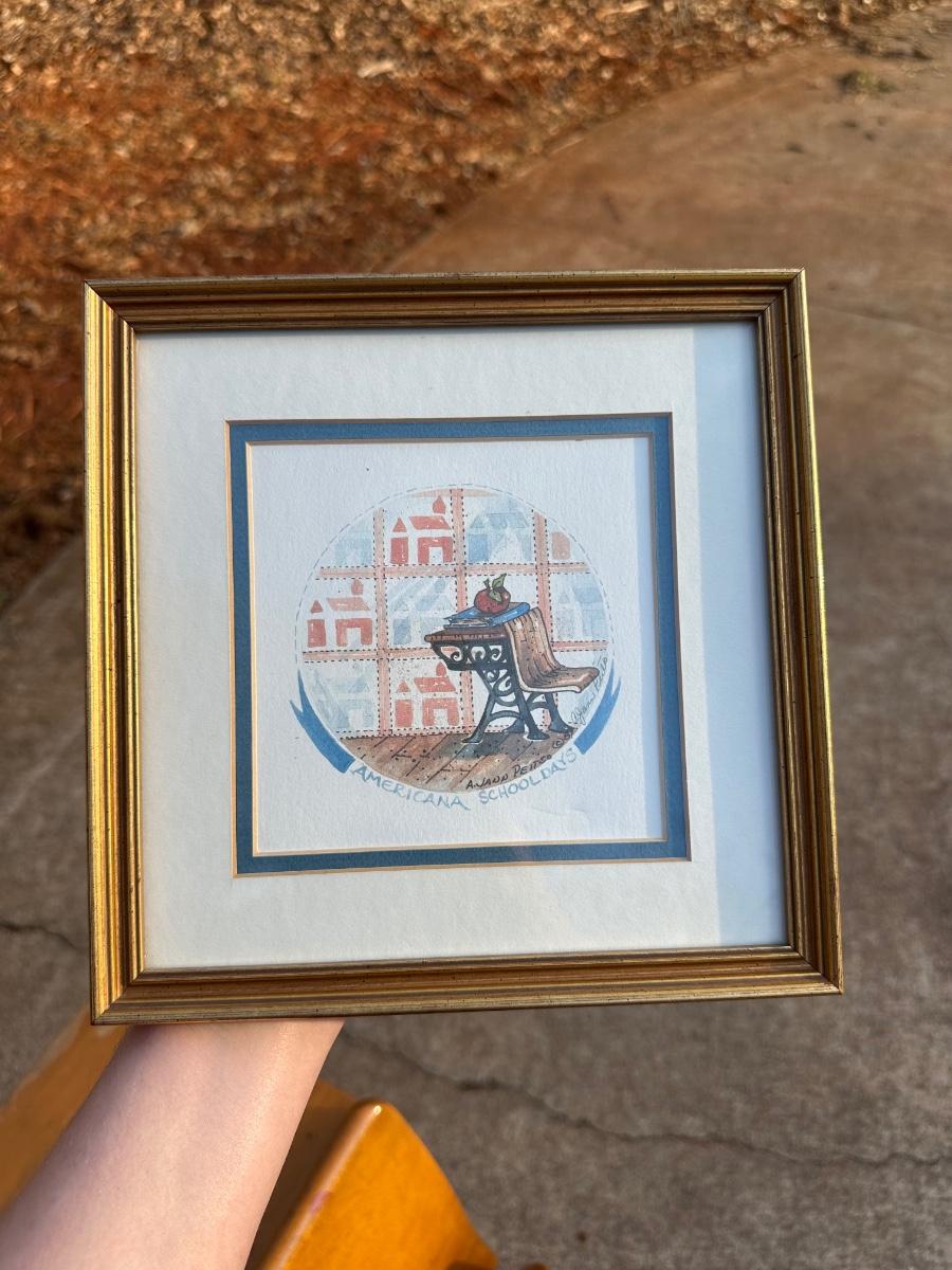 Vintage Wood & Iron School Chair and Small Framed Artwork