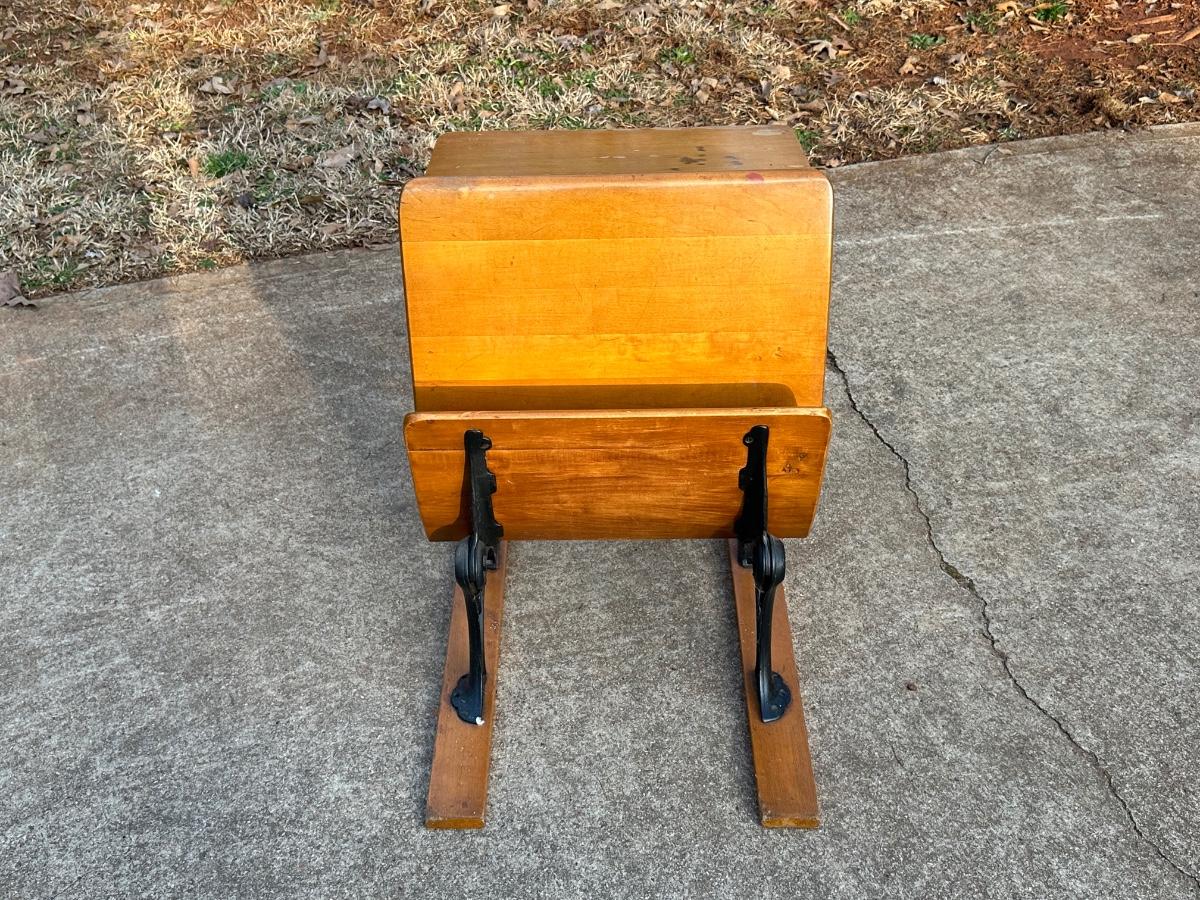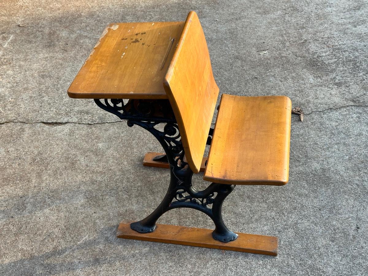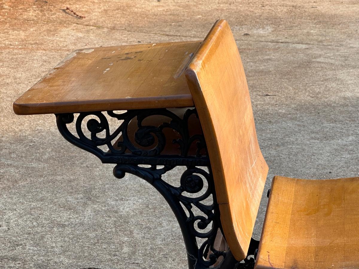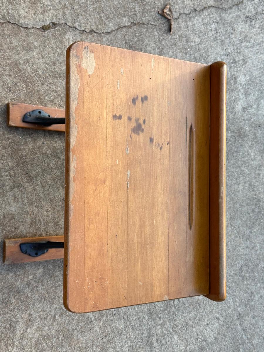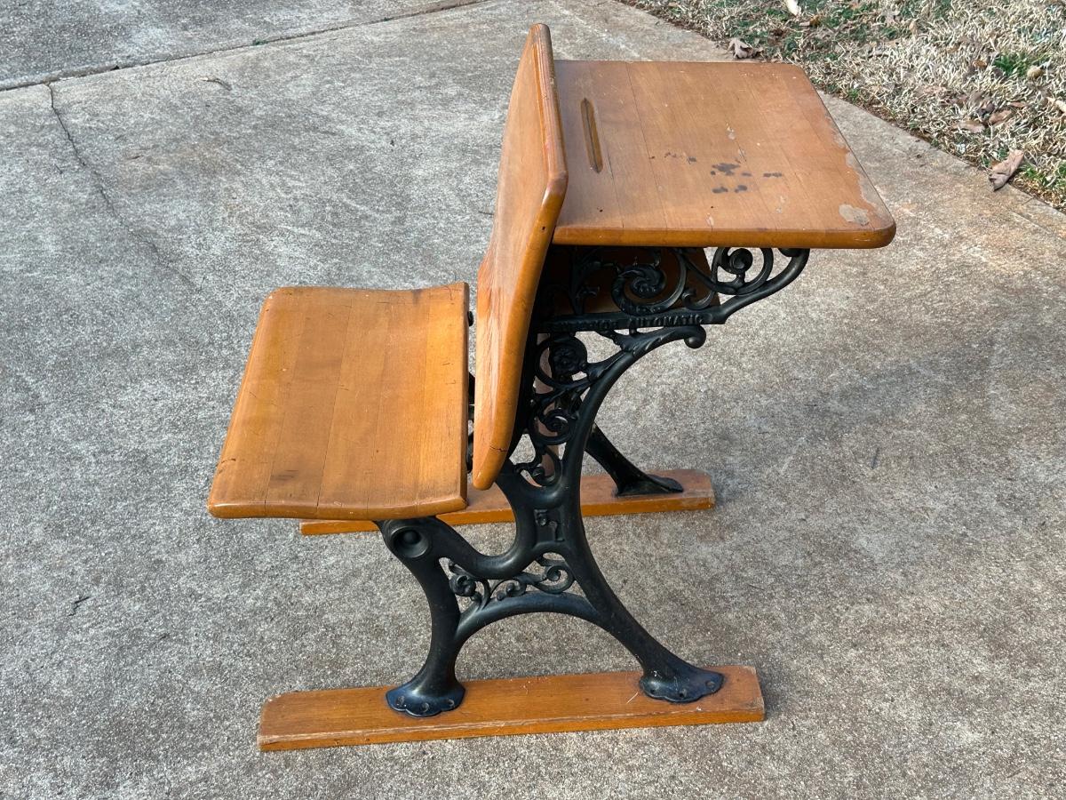 Vintage Wood & Iron School Chair and Small Framed Artwork