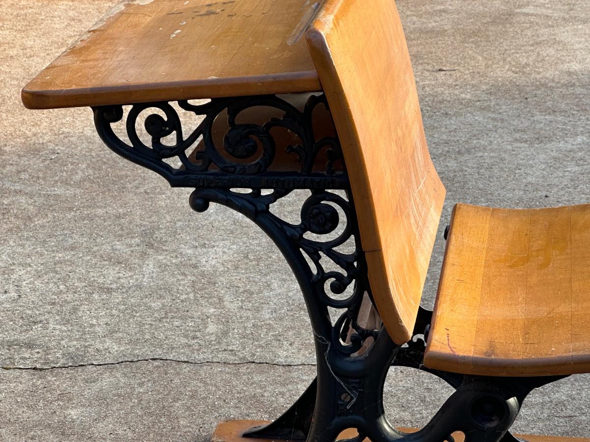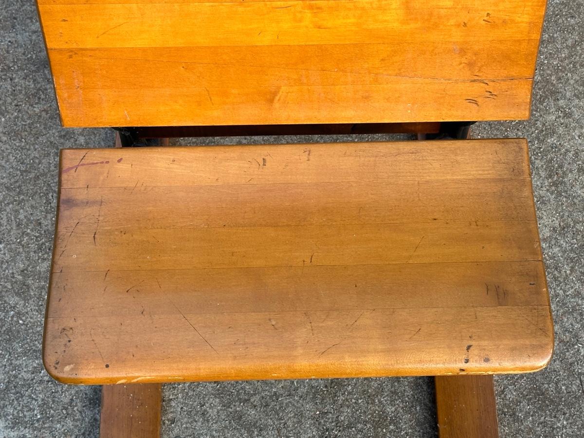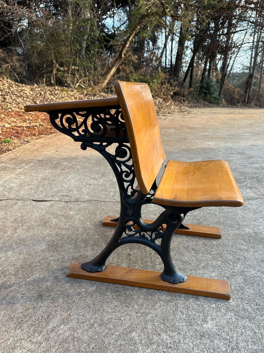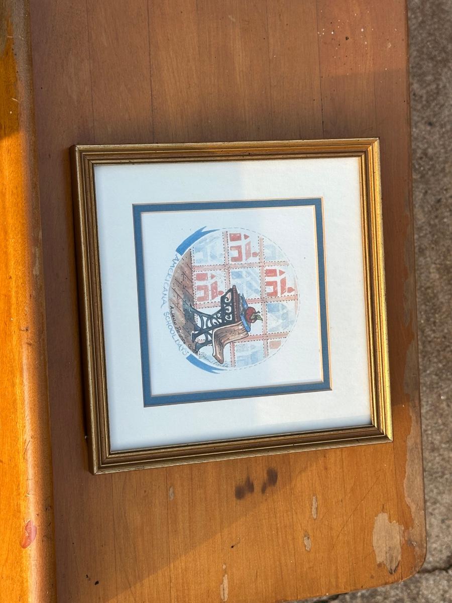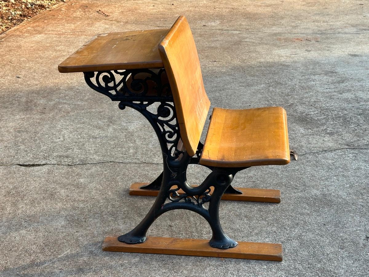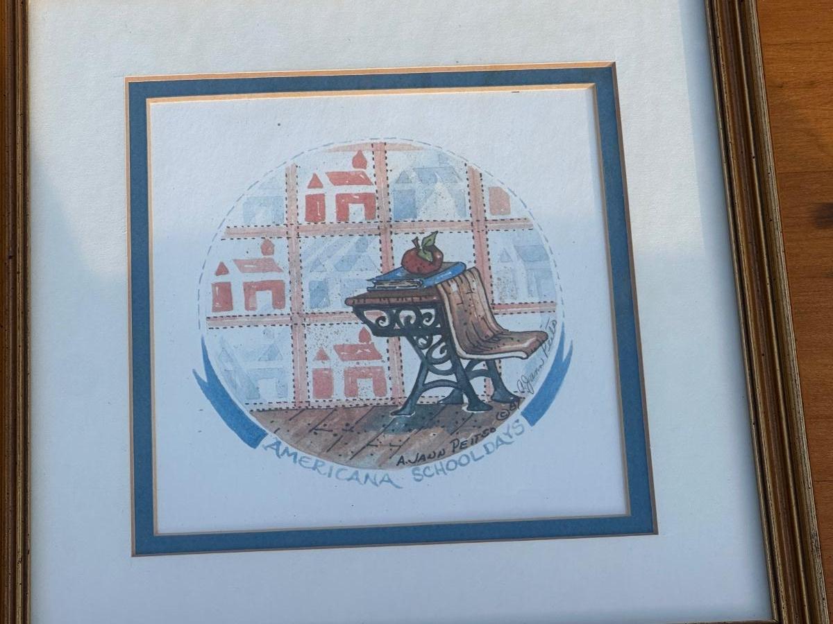Vintage Wood & Iron School Chair and Small Framed Artwork