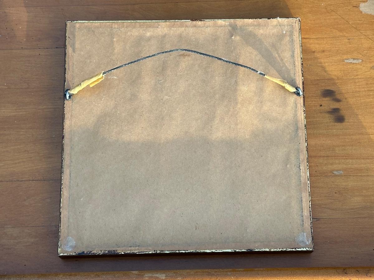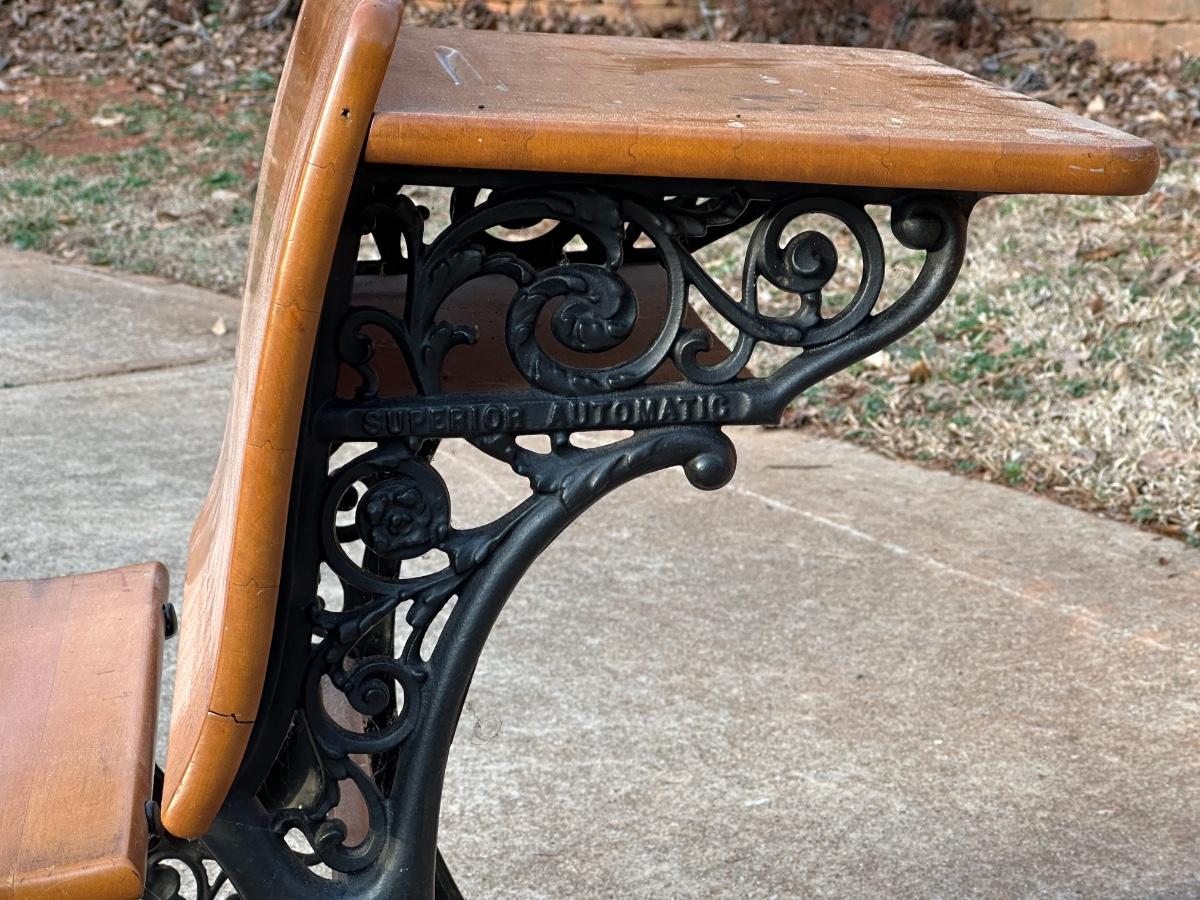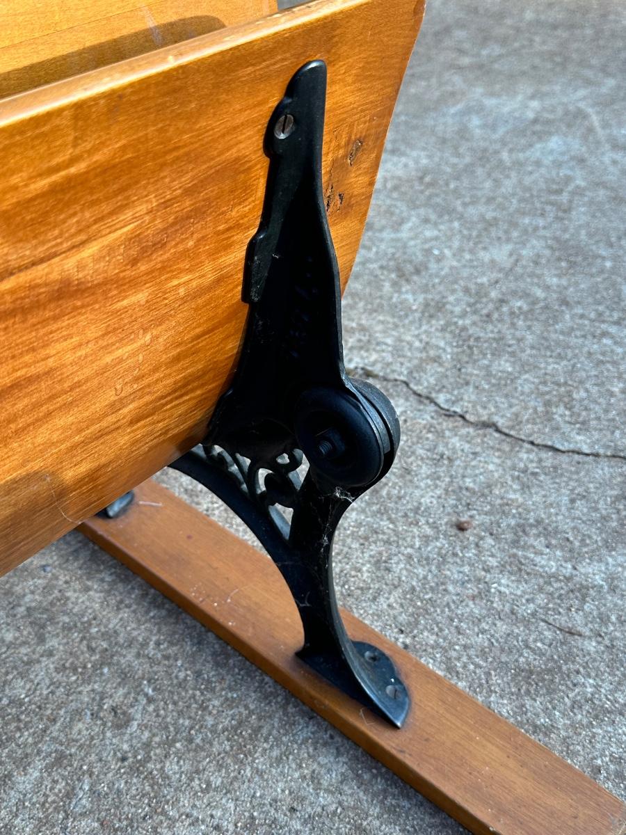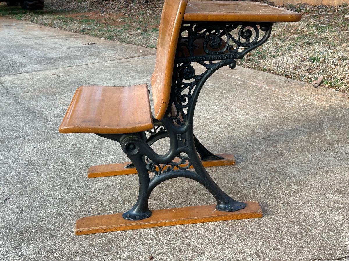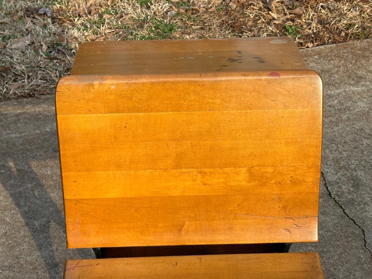 Vintage Wood & Iron School Chair and Small Framed Artwork