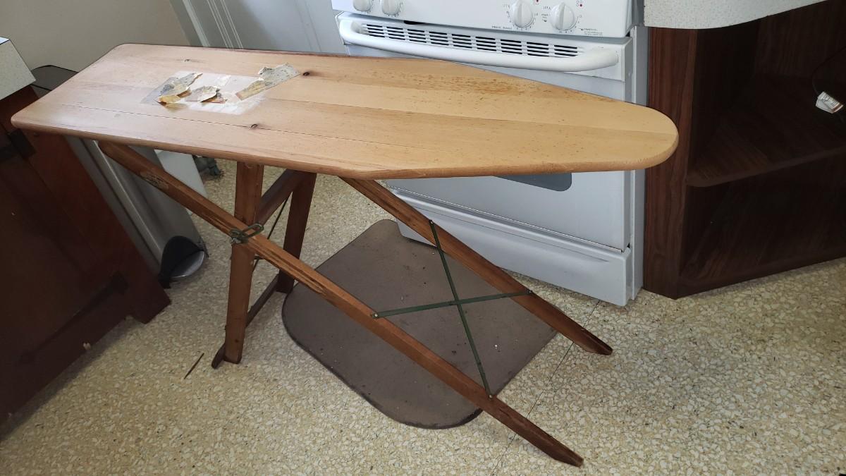 Wood iron board makes a great sofa table