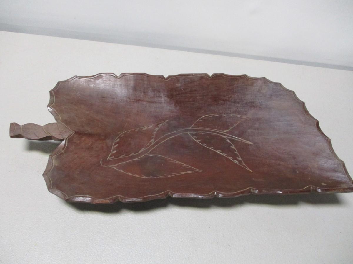 Vintage Wood Leaf Table Breadboard Centerpiece