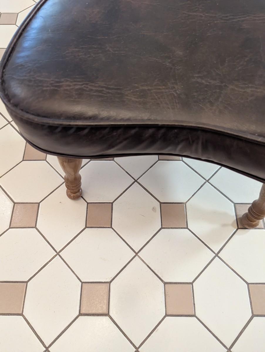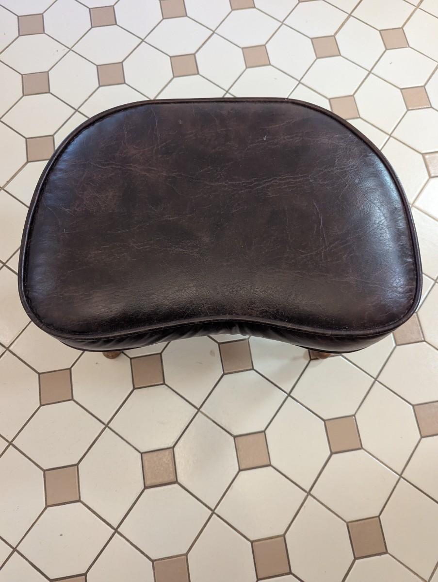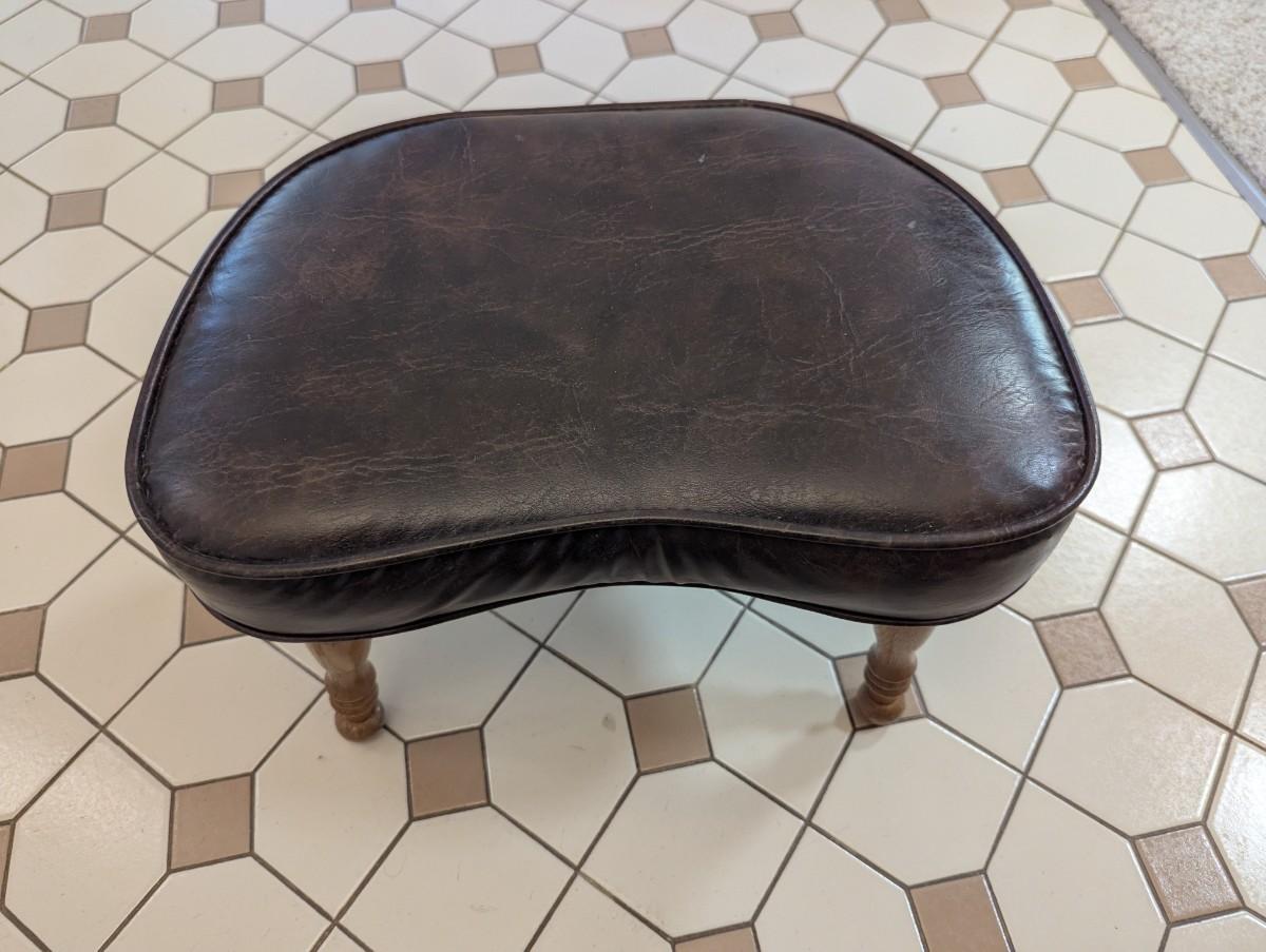 Vintage Wood Legs Leather Kidney Seat Footstool