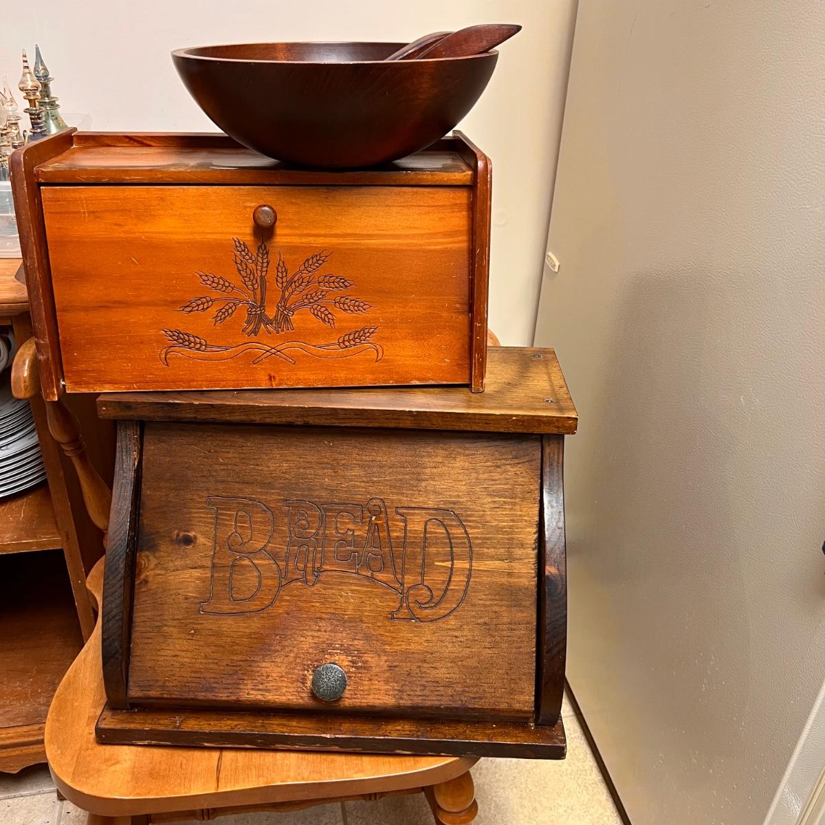 Vintage Wood Bread Boxes, MnM Canada Salad Bowl
