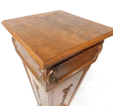 Vintage Wood Made Tapered Art Pedestal Italy surface has some delamination as shown